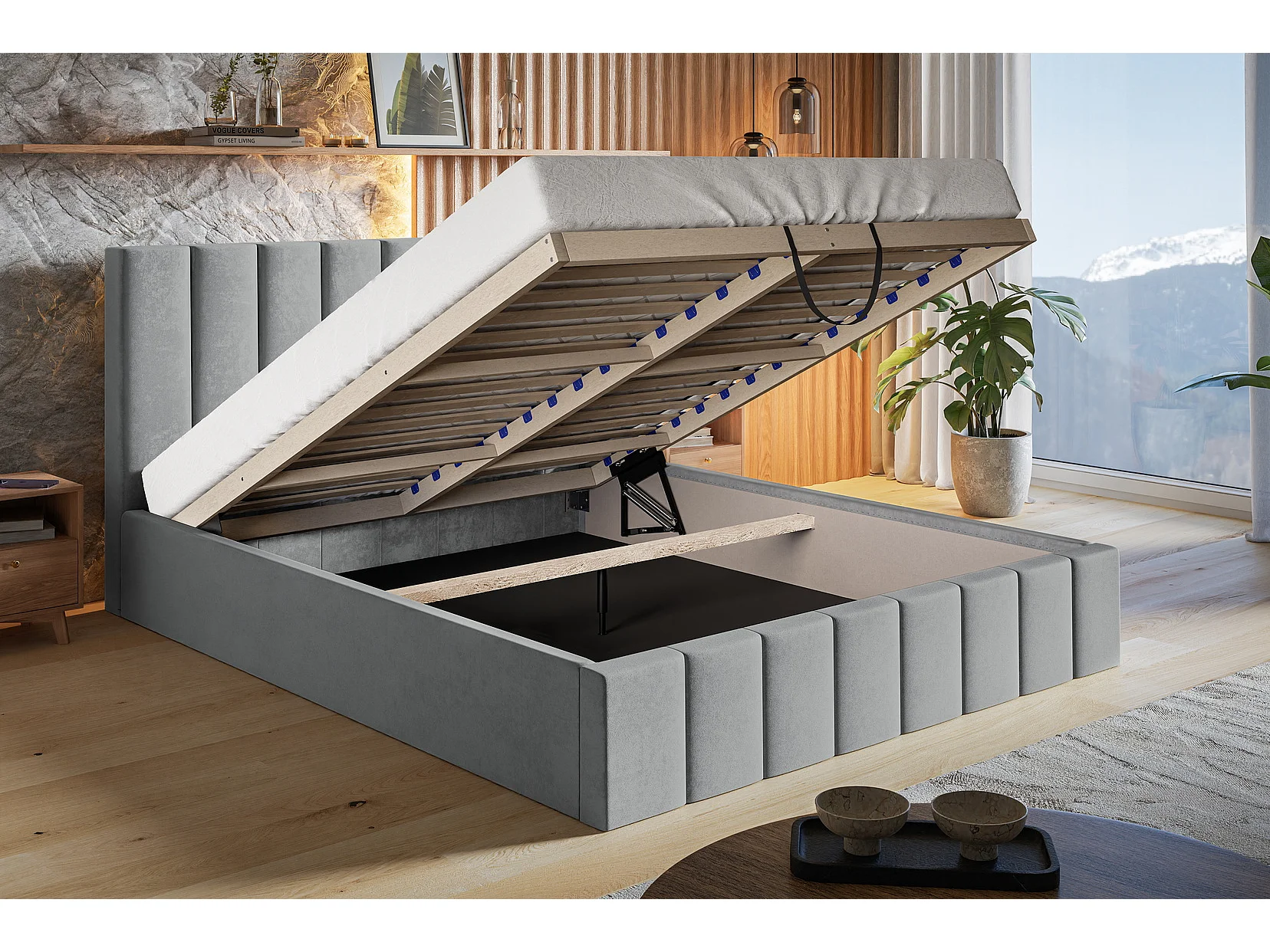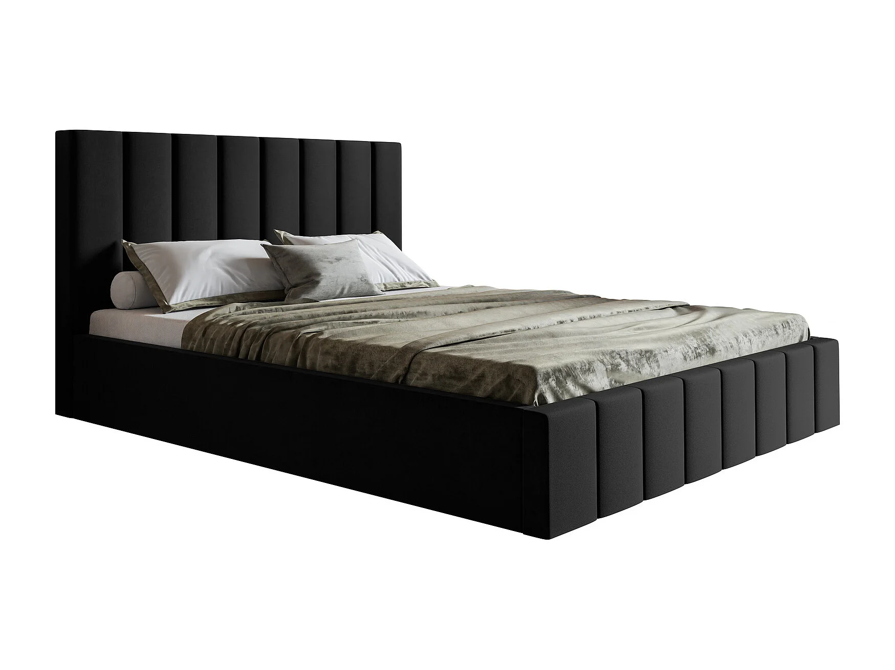 Emporius Lit avec Rangment 180 x 200 cm Moris - Tissu Velours & Sommier, Lit adulte 180x200 cm - Velvet Noir (Jasmine 100)