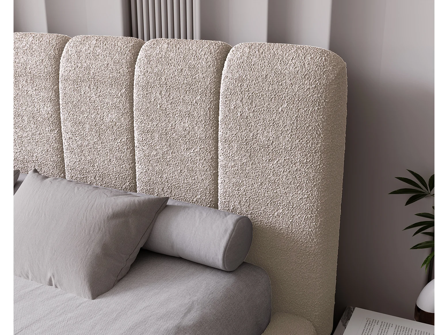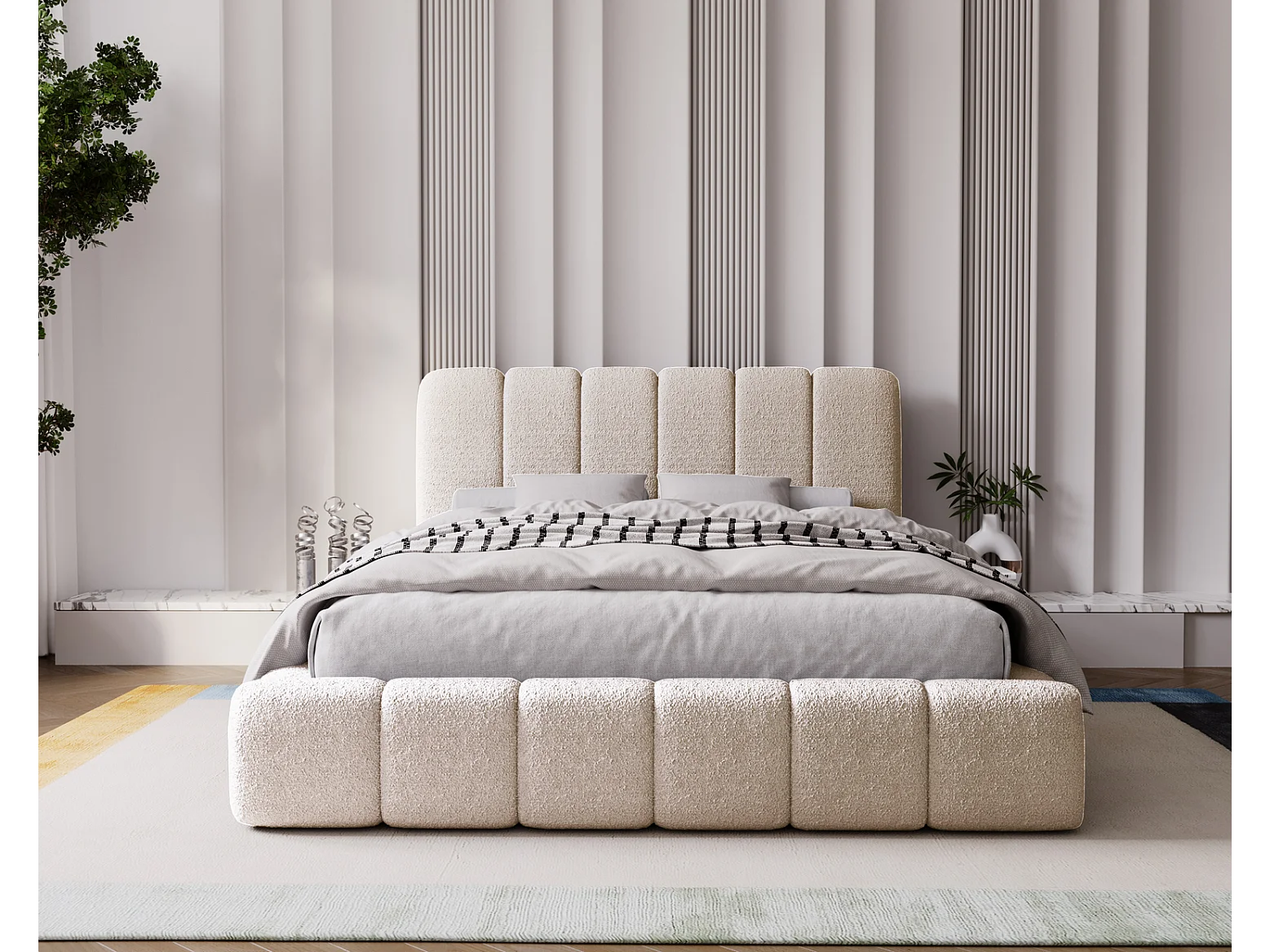 Emporius Lit coffre 200x200 Milan, Lit Rembourré avec Rangement - Lit bouclé Beige (Anthology 3)