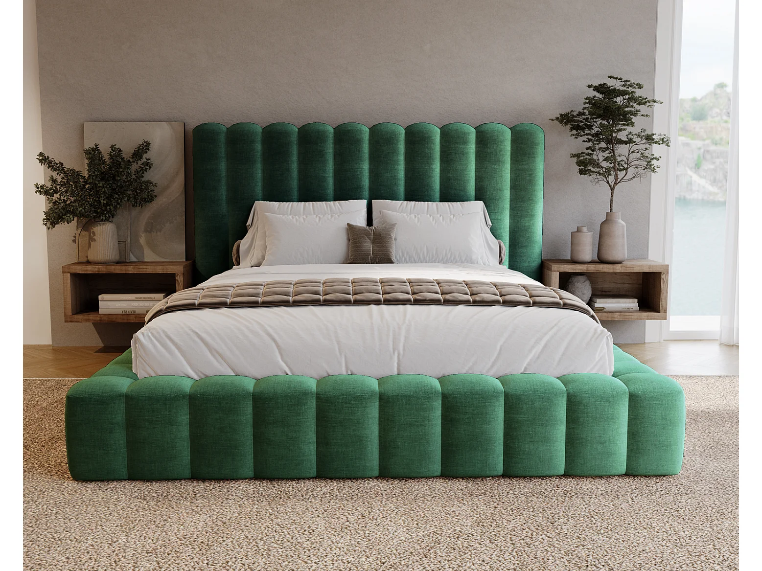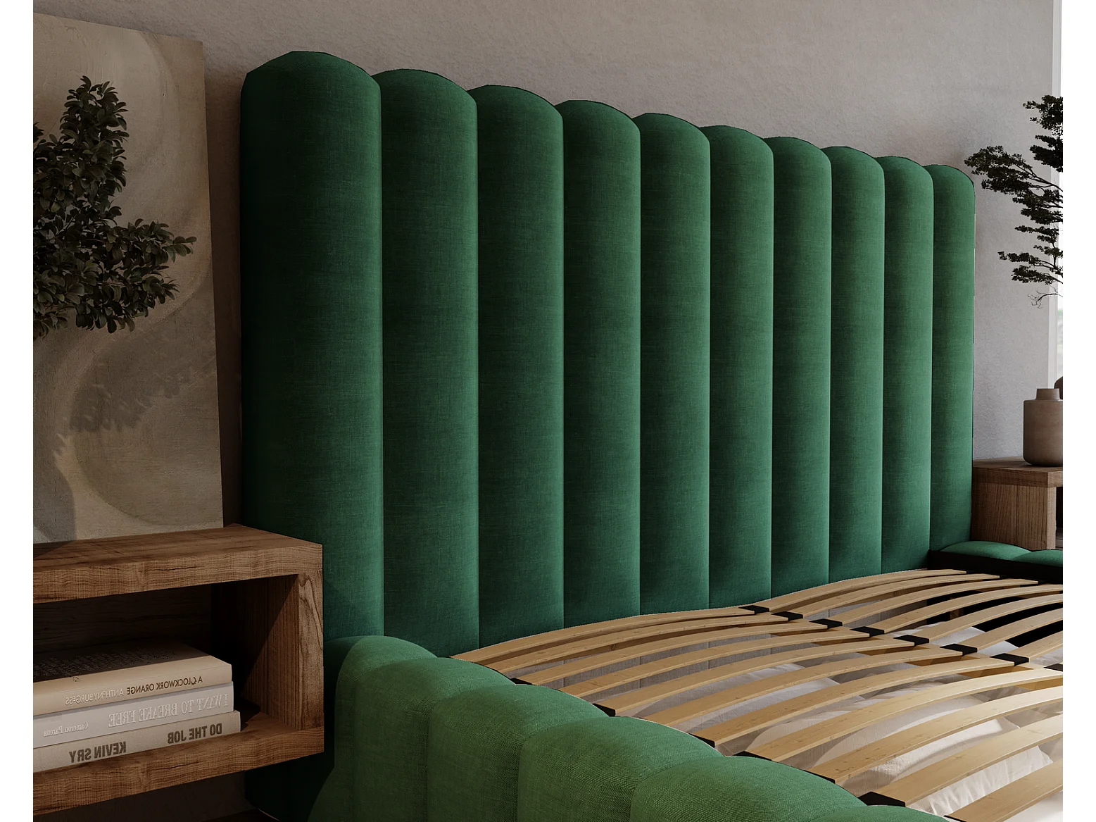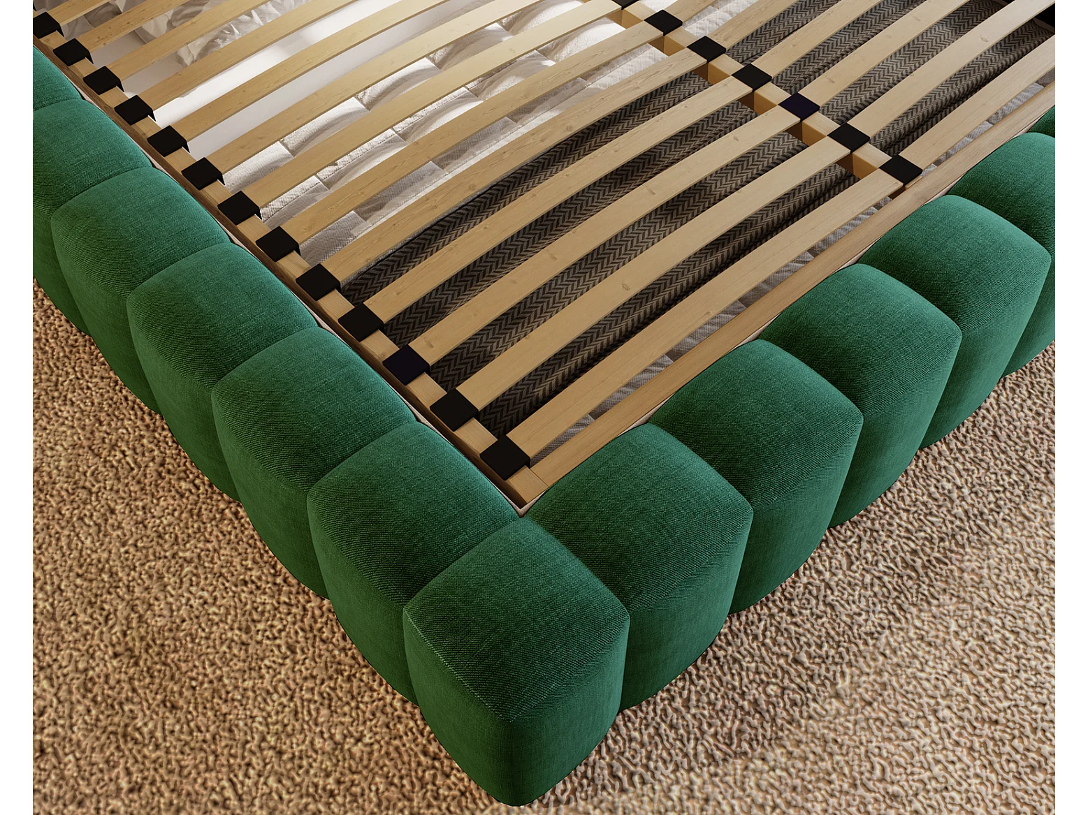 Emporius Lit double 140 x 200 Elise - Lit capitonné avec cadre, Rangement, Vert (Ikoo 13)