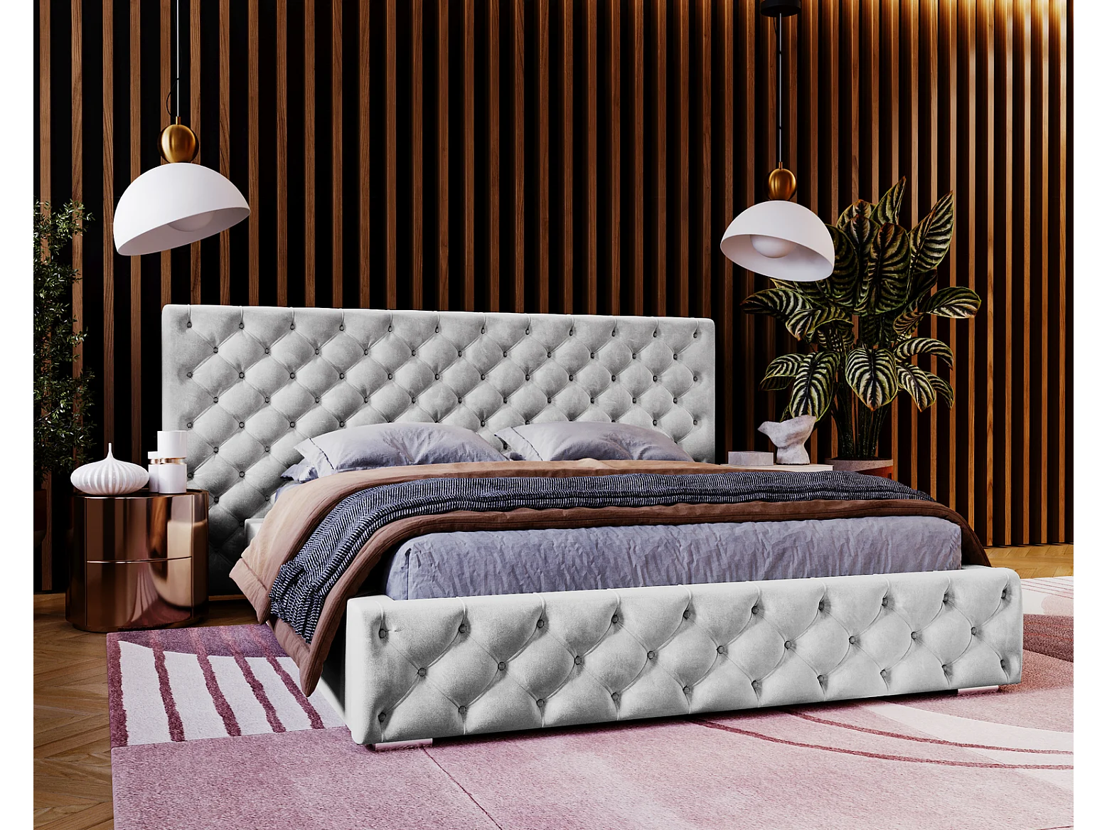 Emporius Lit double 160x200 Bella - Chesterfield Lit, tissu Velvet, Rangement, Sommier à Lattes - Lit double Gris clair (Magic Velvet 2218)