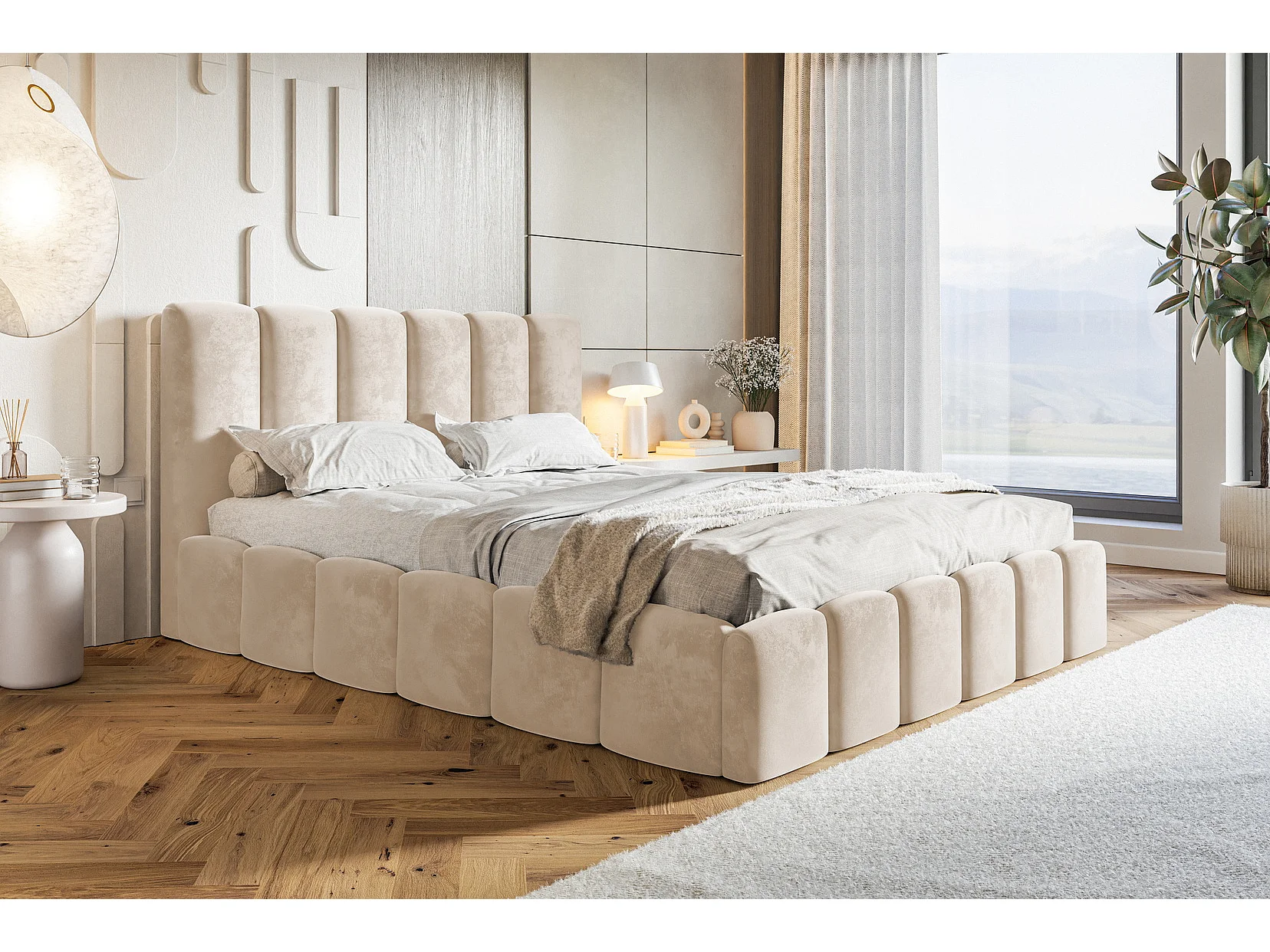 Emporius Lit Rembourré 180 x 200 cm avec Rangement Palermo - Lit Double 180x200, tissu Velvet Beige (Amor Velvet 4304)