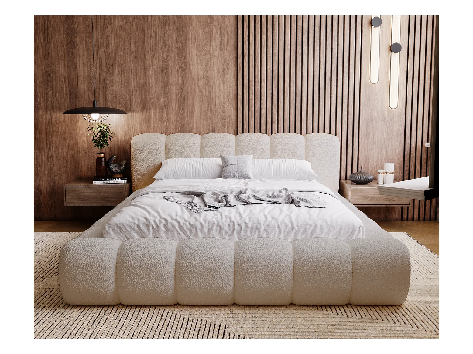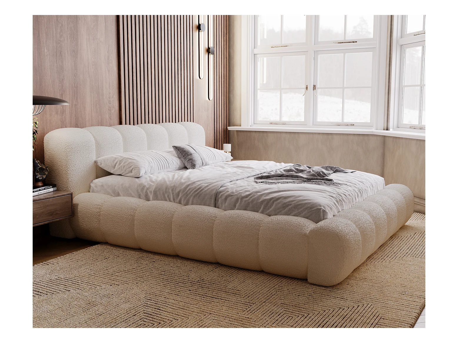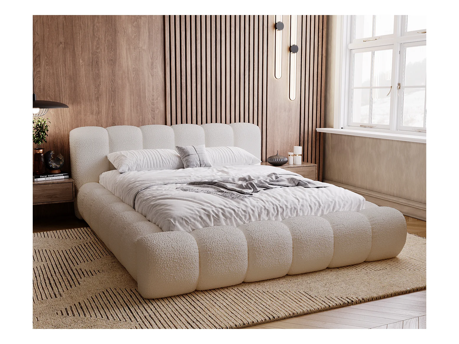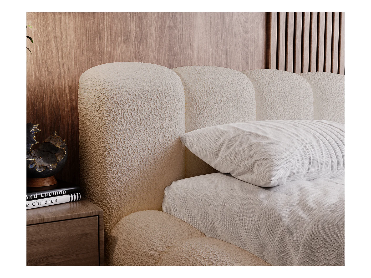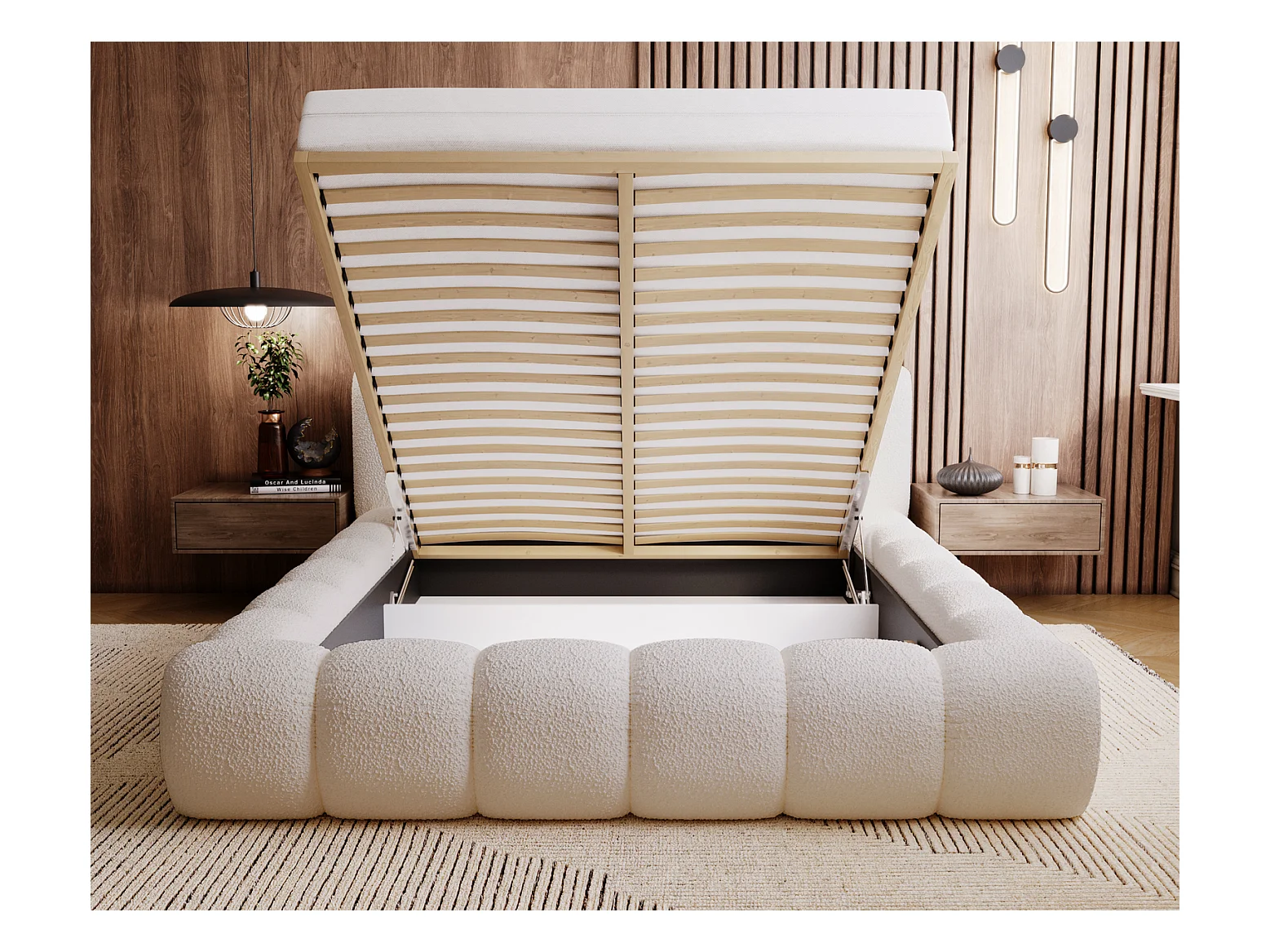 Emporius Lit Rembourré avec Rangement 140x200 Cloud - Lit coffre, Sommier à Lattes - Lit adulte, Lit double 140x200, tissu bouclé - Beige (Anthology 3)