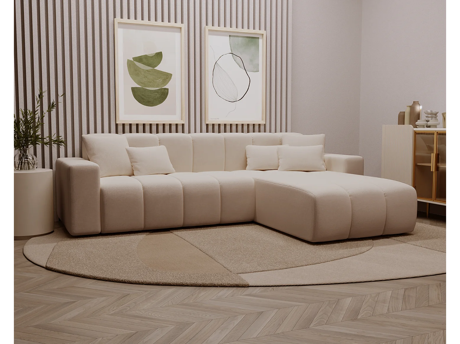 Emporius Miral Droit Canapé d'angle 265 cm - Sofa, Canapé 4 Places, Canapé d'angle Beige (Komodo 11)