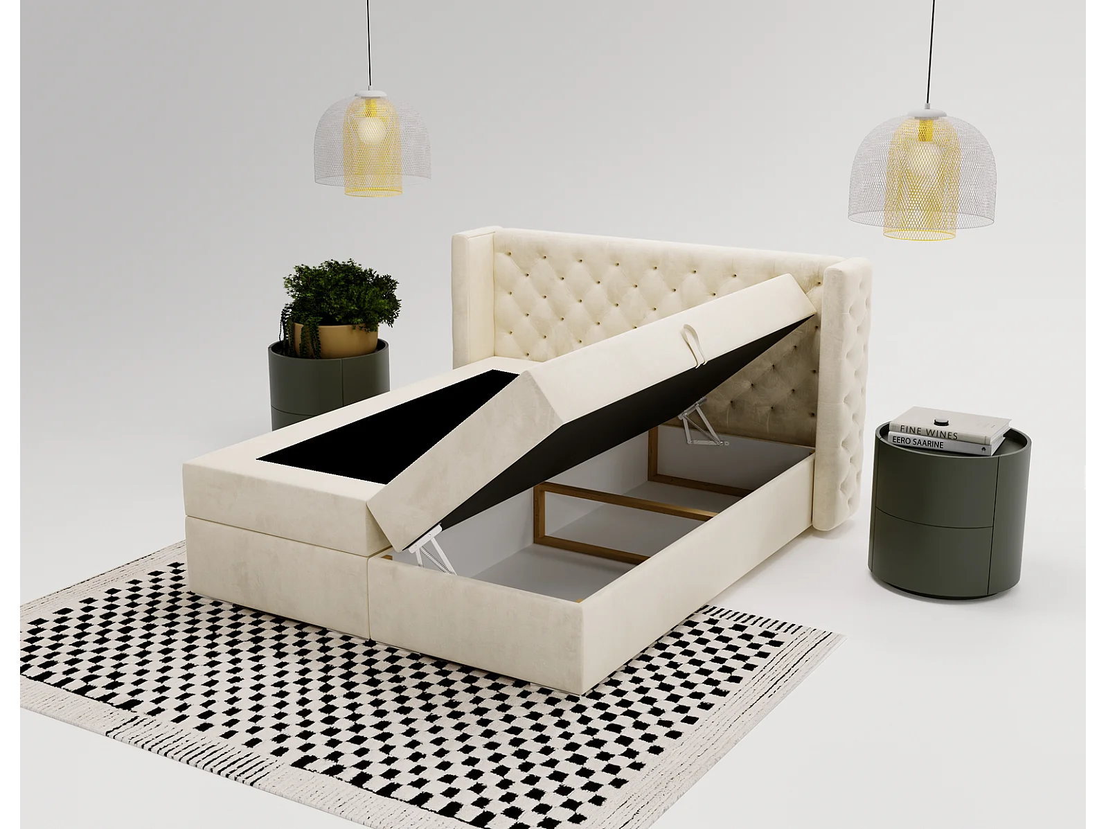 Emporius Valencia Box Lit adulte 140x200 cm - Lit avec matelas, Rangement, surmatelas, - lit double 140x200 Beige (Magic Velvet 2201)