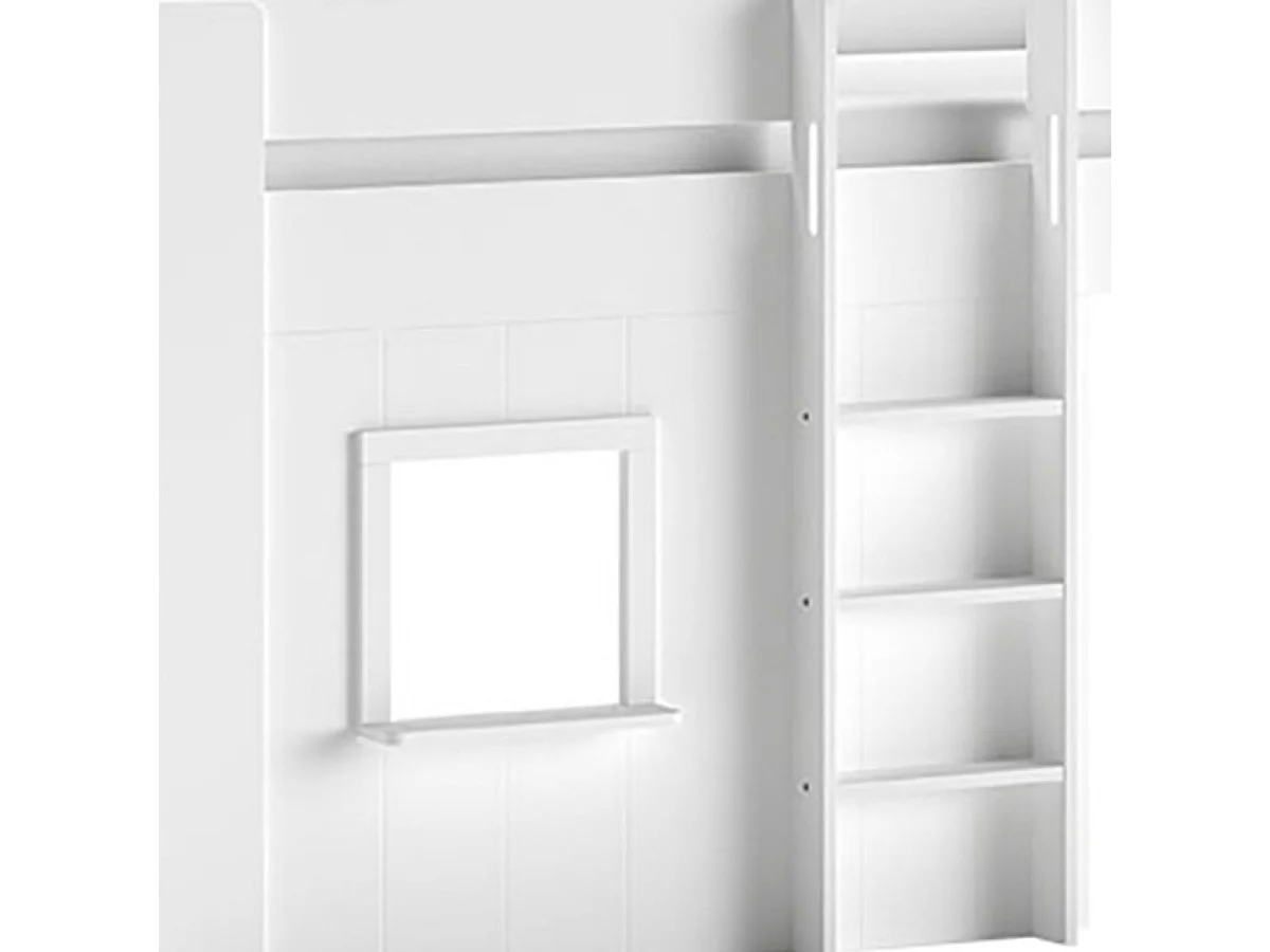EMRYS - Lit Mi-Hauteur à Fenêtres 90x200cm en MDF Laqué Blanc