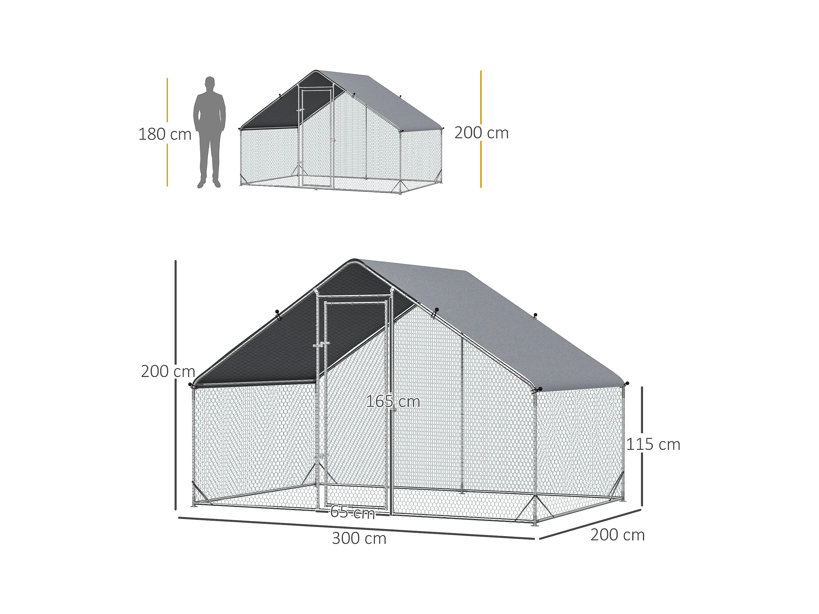 Enclos poulailler chenil 18 m² - parc grillagé dim 6L x 3l x 1,95H m - espace couvert - acier galvanisé