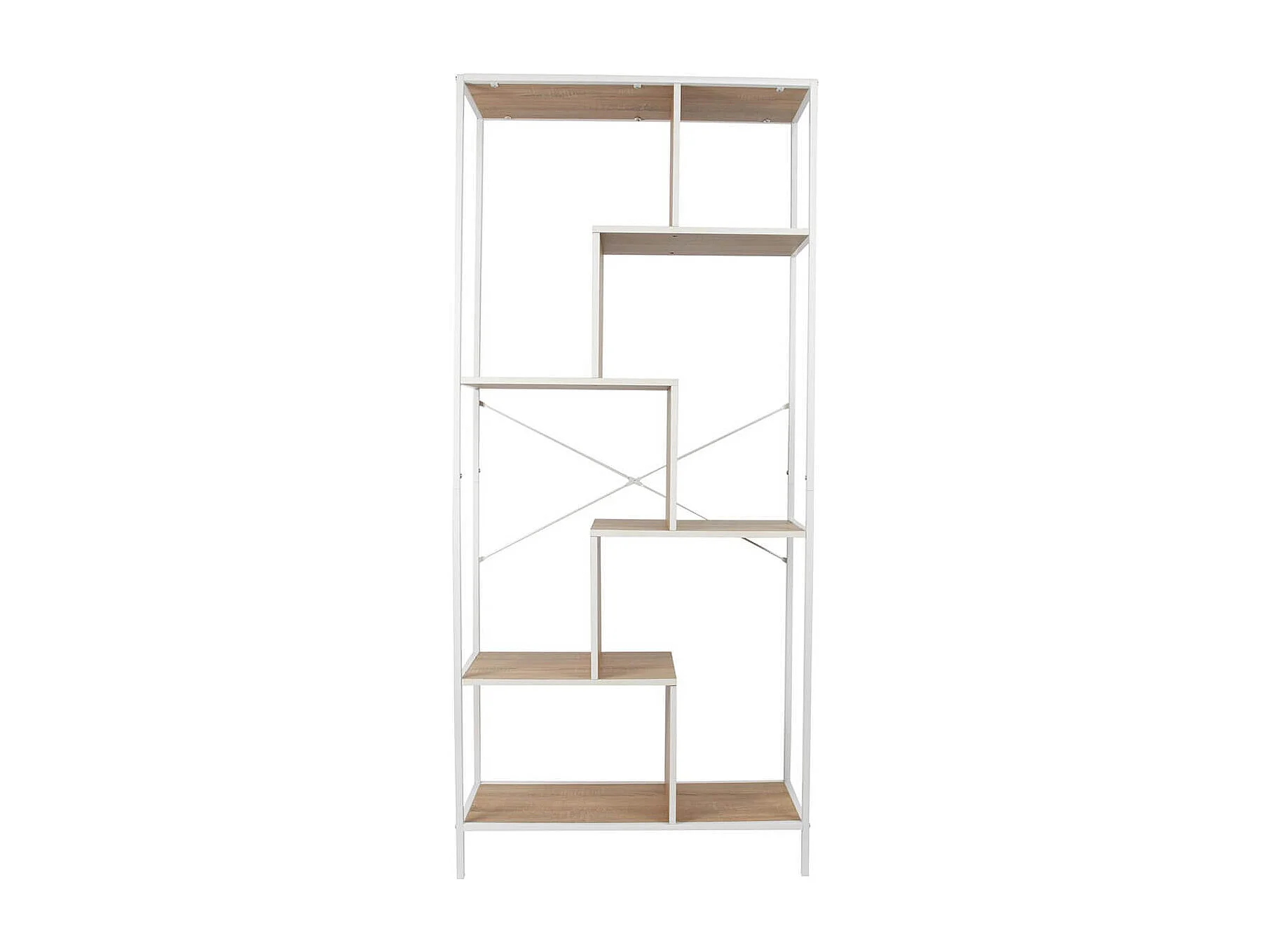 ENDIS - Etagère 6 Niveaux Aspect Bois et Métal Blanc