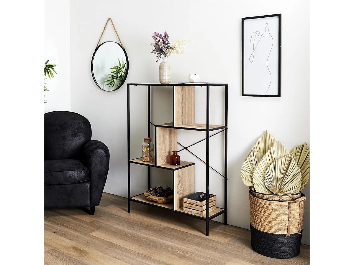 ENDIS - Etagère 6 Niveaux Aspect Bois et Métal Noir