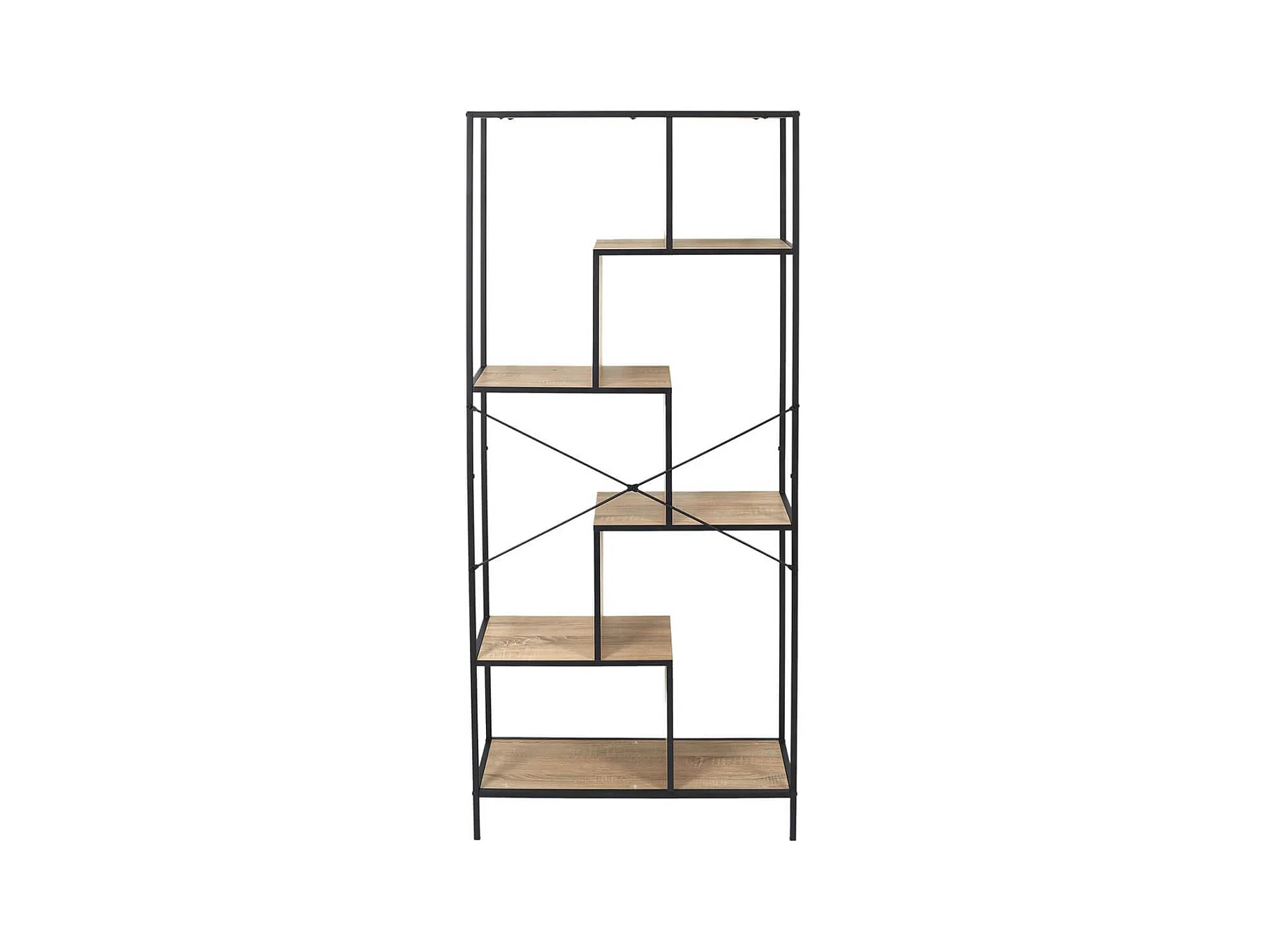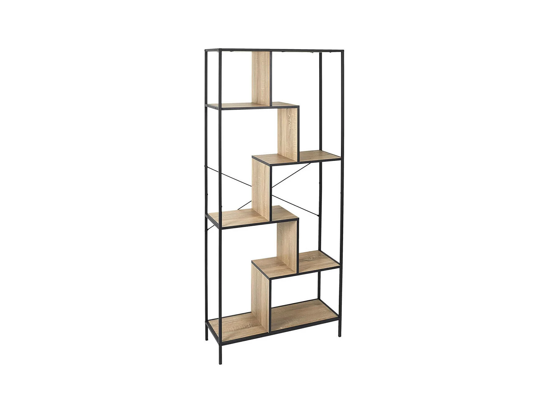 ENDIS - Etagère 6 Niveaux Aspect Bois et Métal Noir