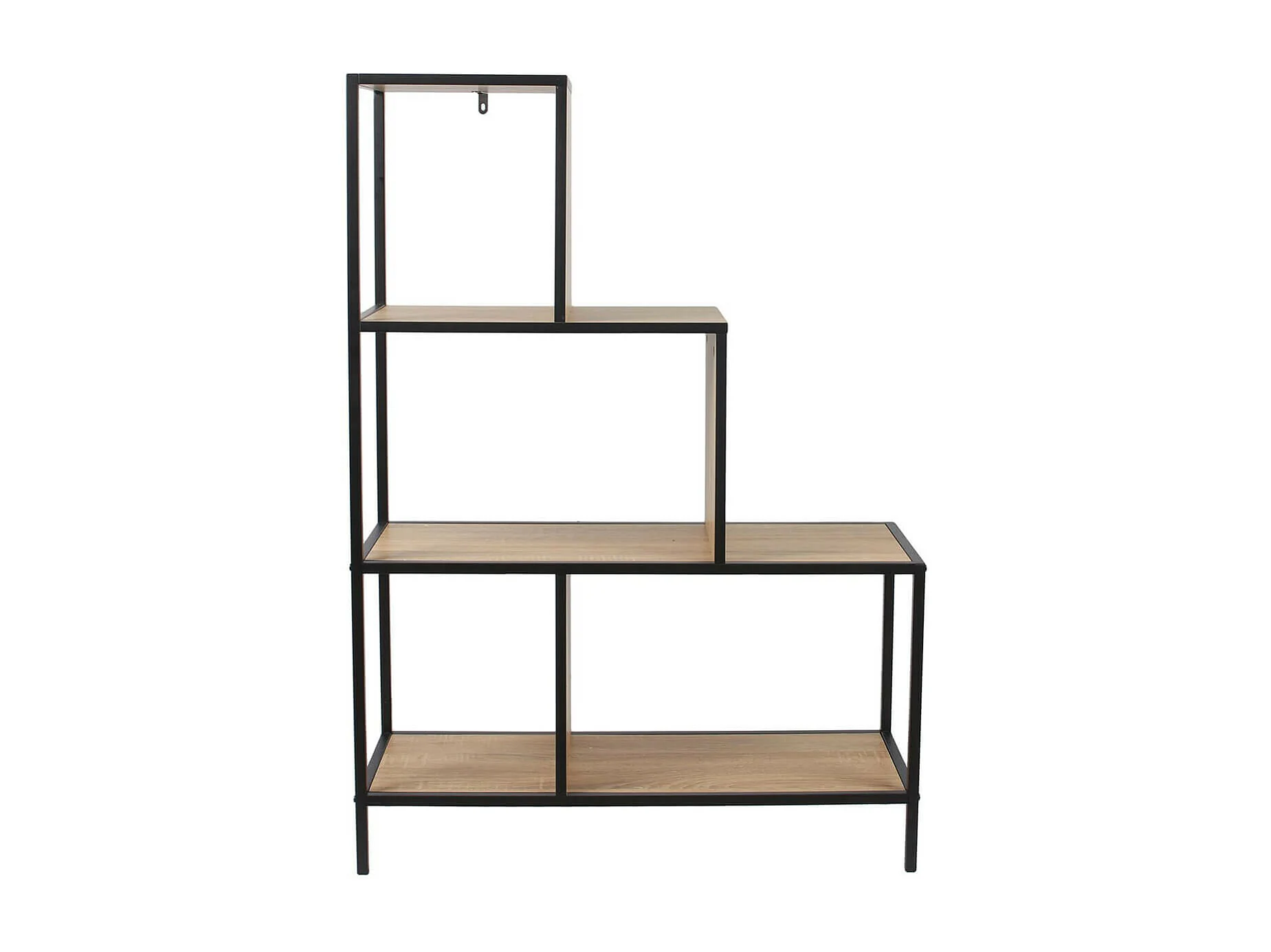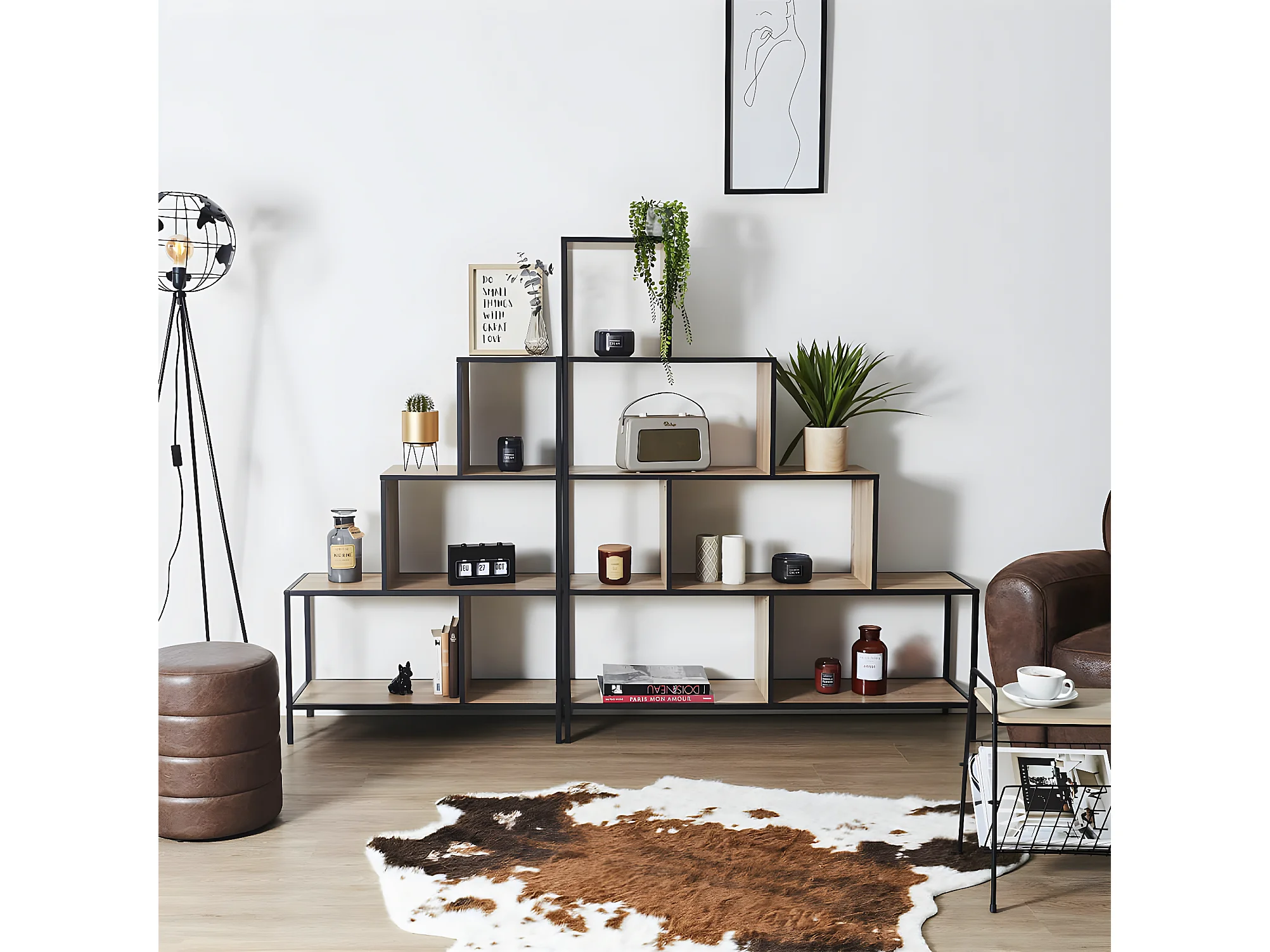 ENDIS - Lot de 2 Etagères Escalier 4 + 5 Niveaux Aspect Bois et Métal Noir