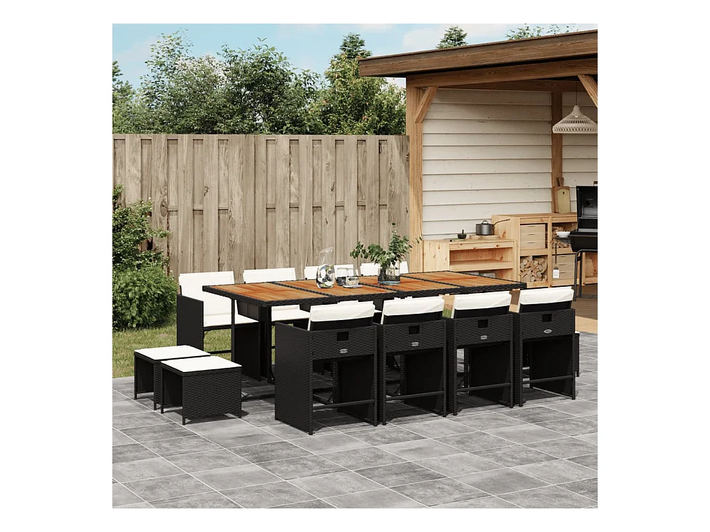 Enfield Ensemble à manger de jardin 13 pcs coussins noir résine tressée