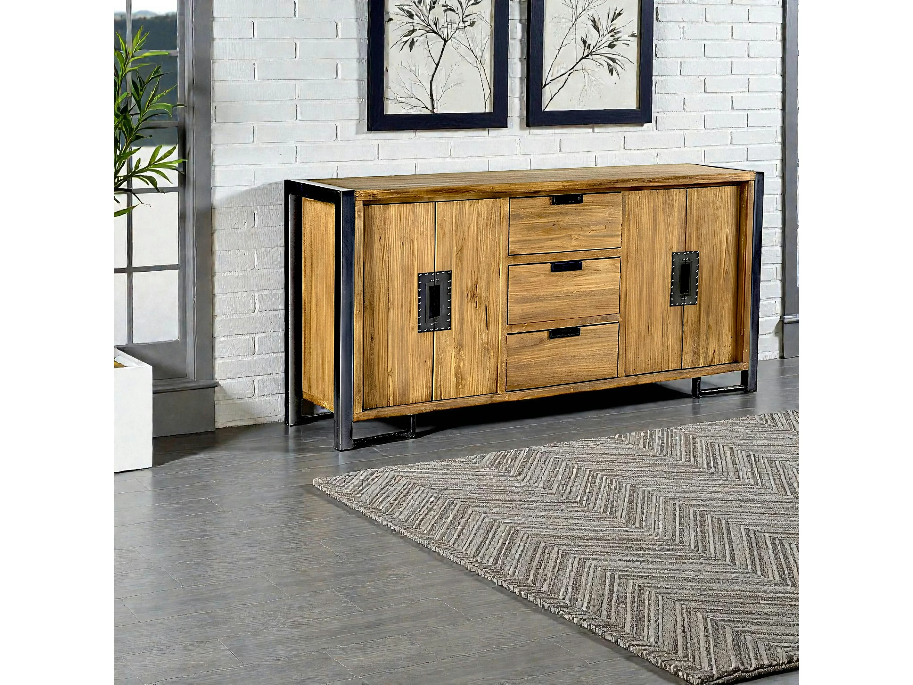 Enfilade en teck naturel 4 portes 3 tiroirs 186x88x45cm CANADA