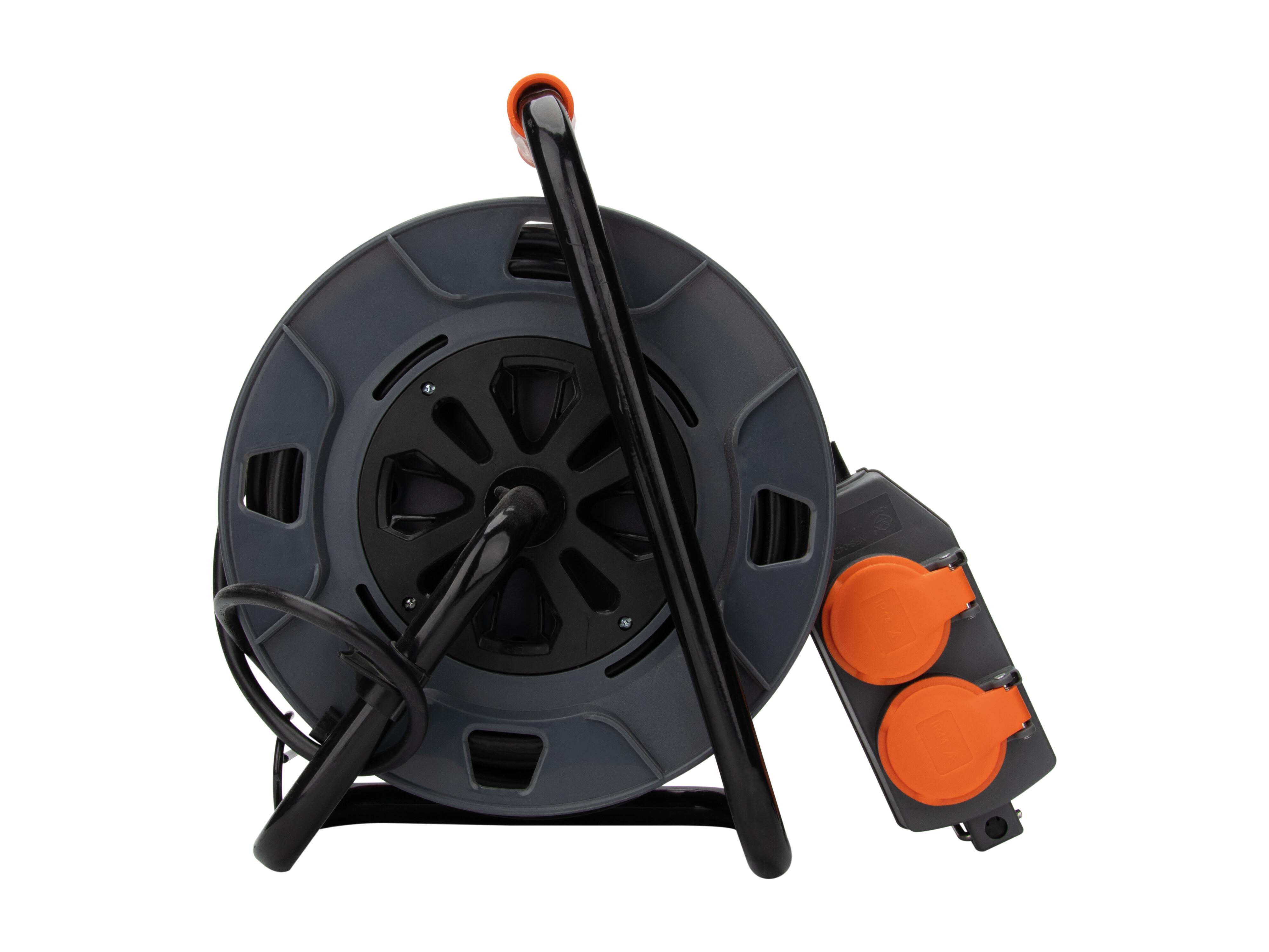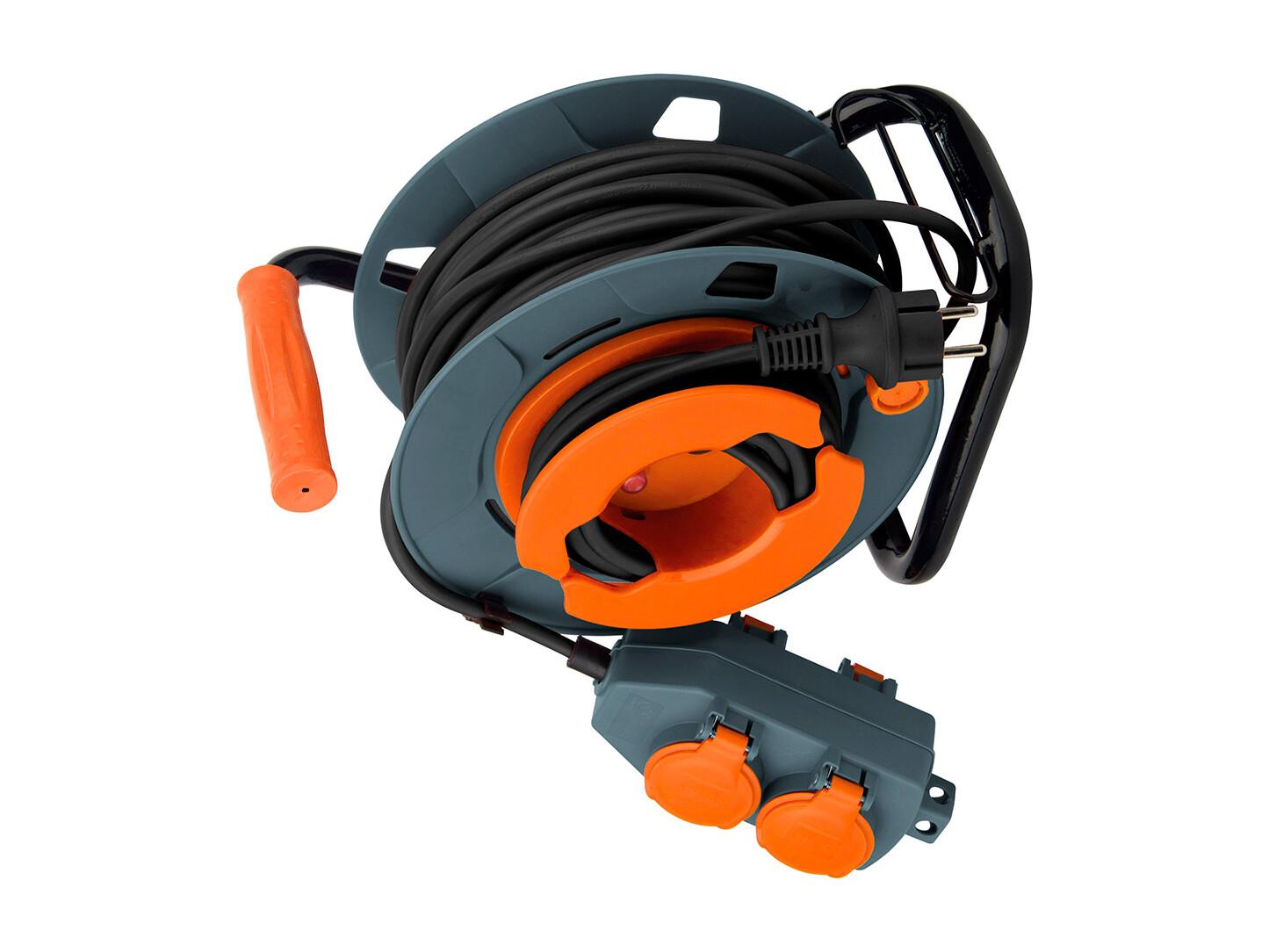 Enrouleur sans prise 2x1,5 mm² 40m pied métal + coupe circuit - Vert/Orange - Zenitech