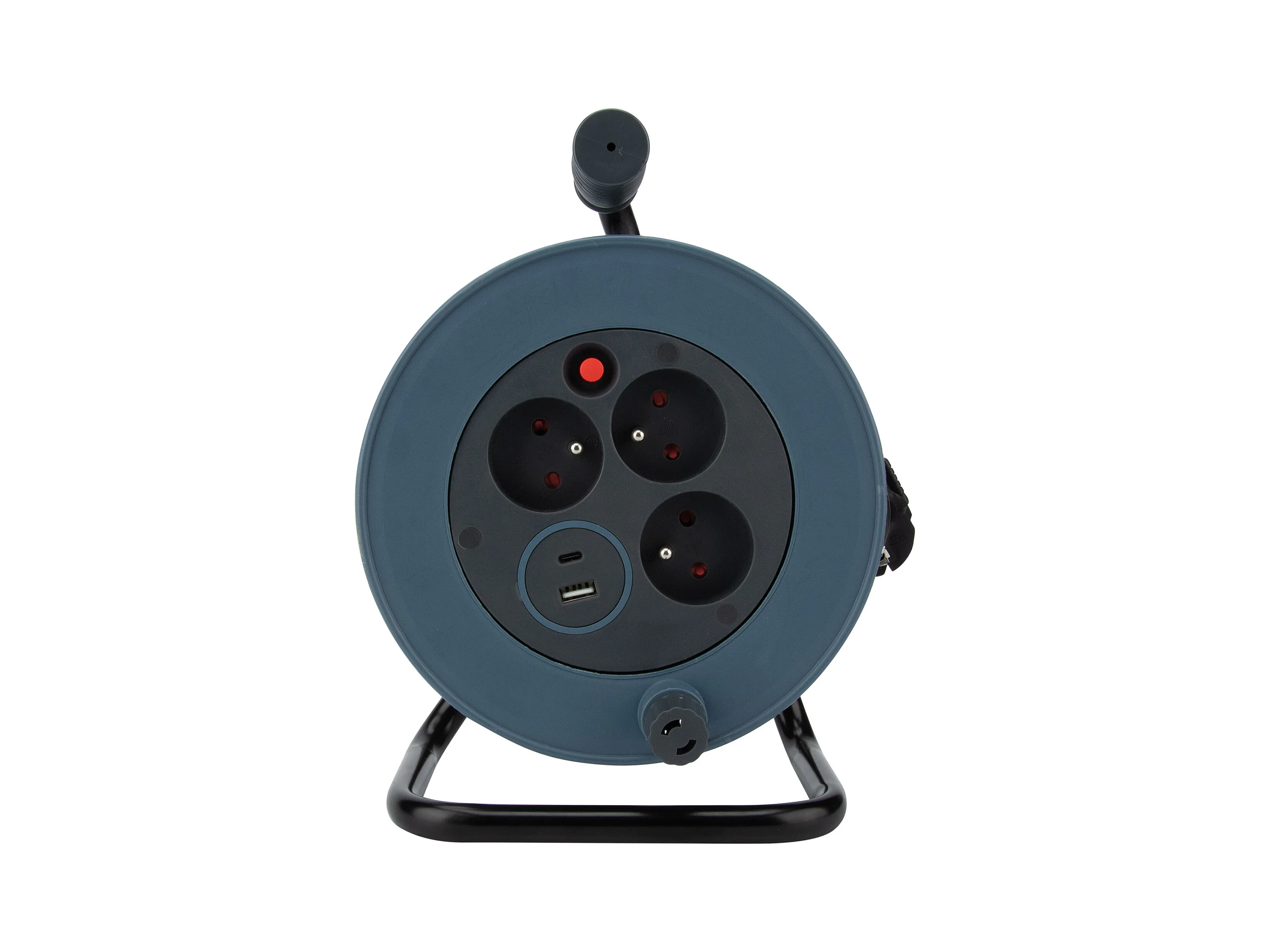 Enrouleur compact 3 prises + 2 USB C/A 12m - Gris - Zenitech
