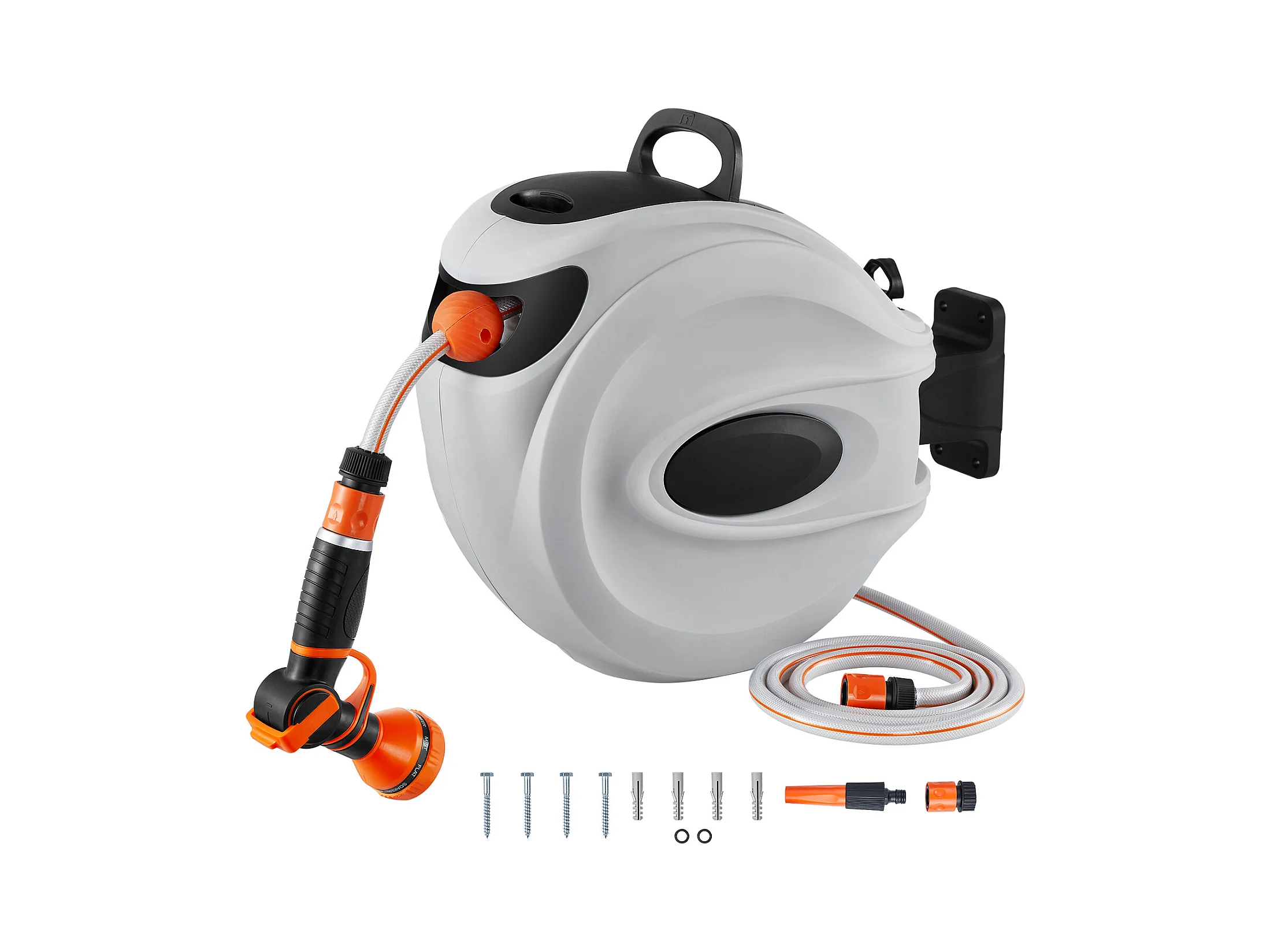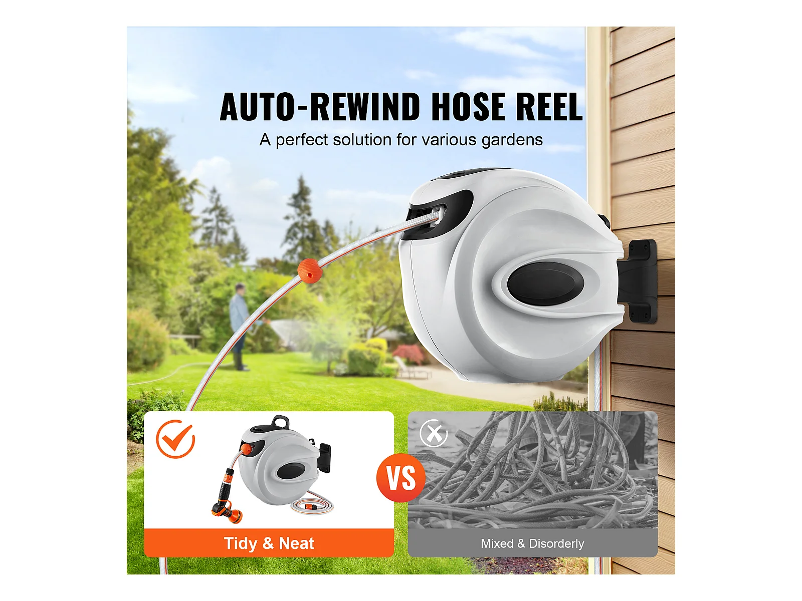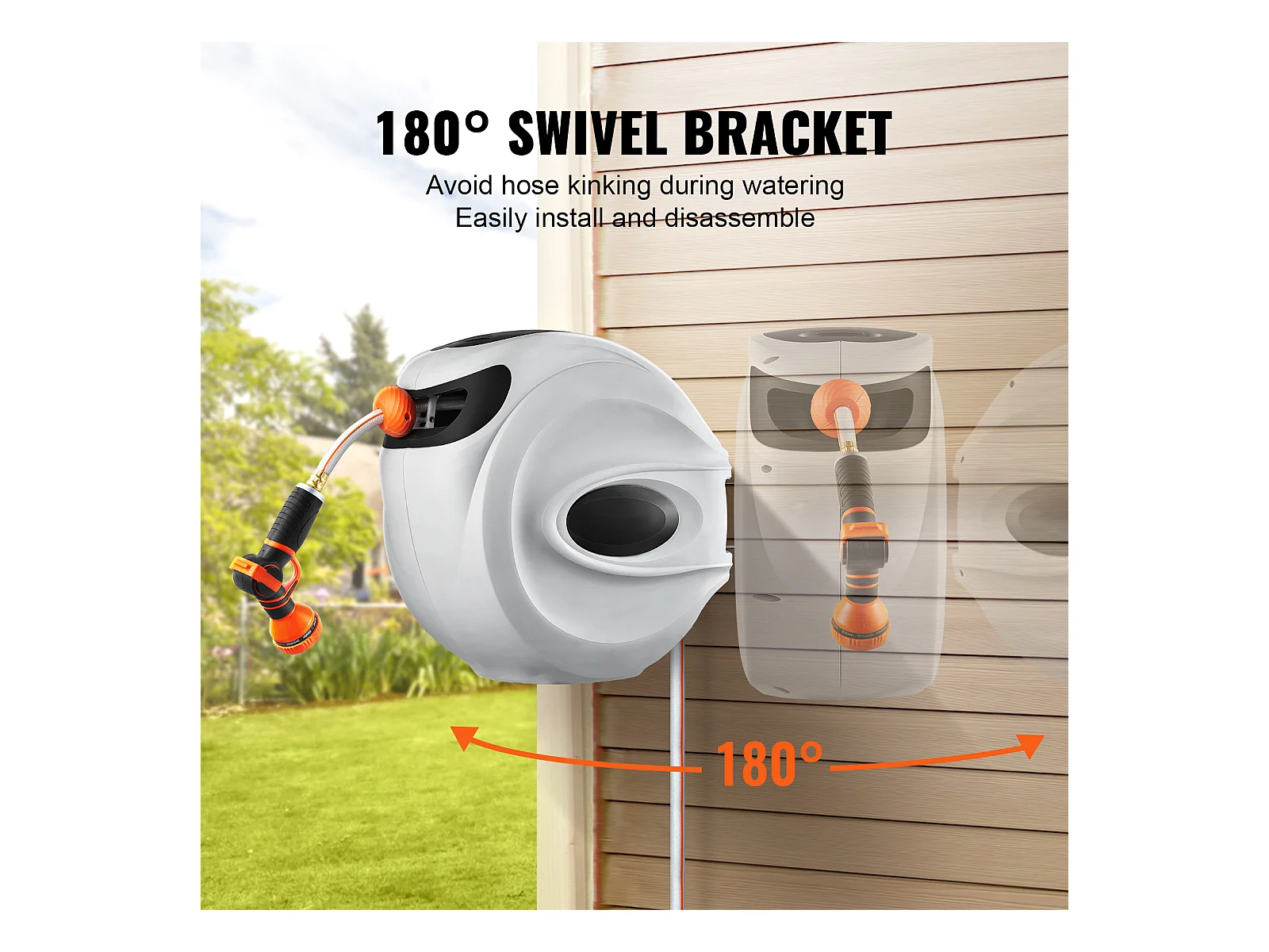 Enrouleur de Tuyau Rétractable SucceBuy 65.6'x1/2" 180° Pivotant Montage Mural
