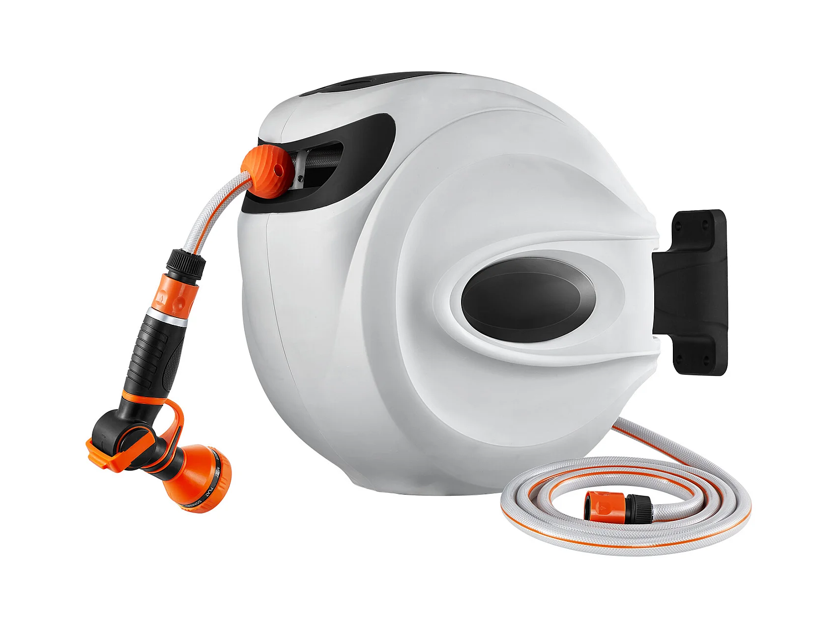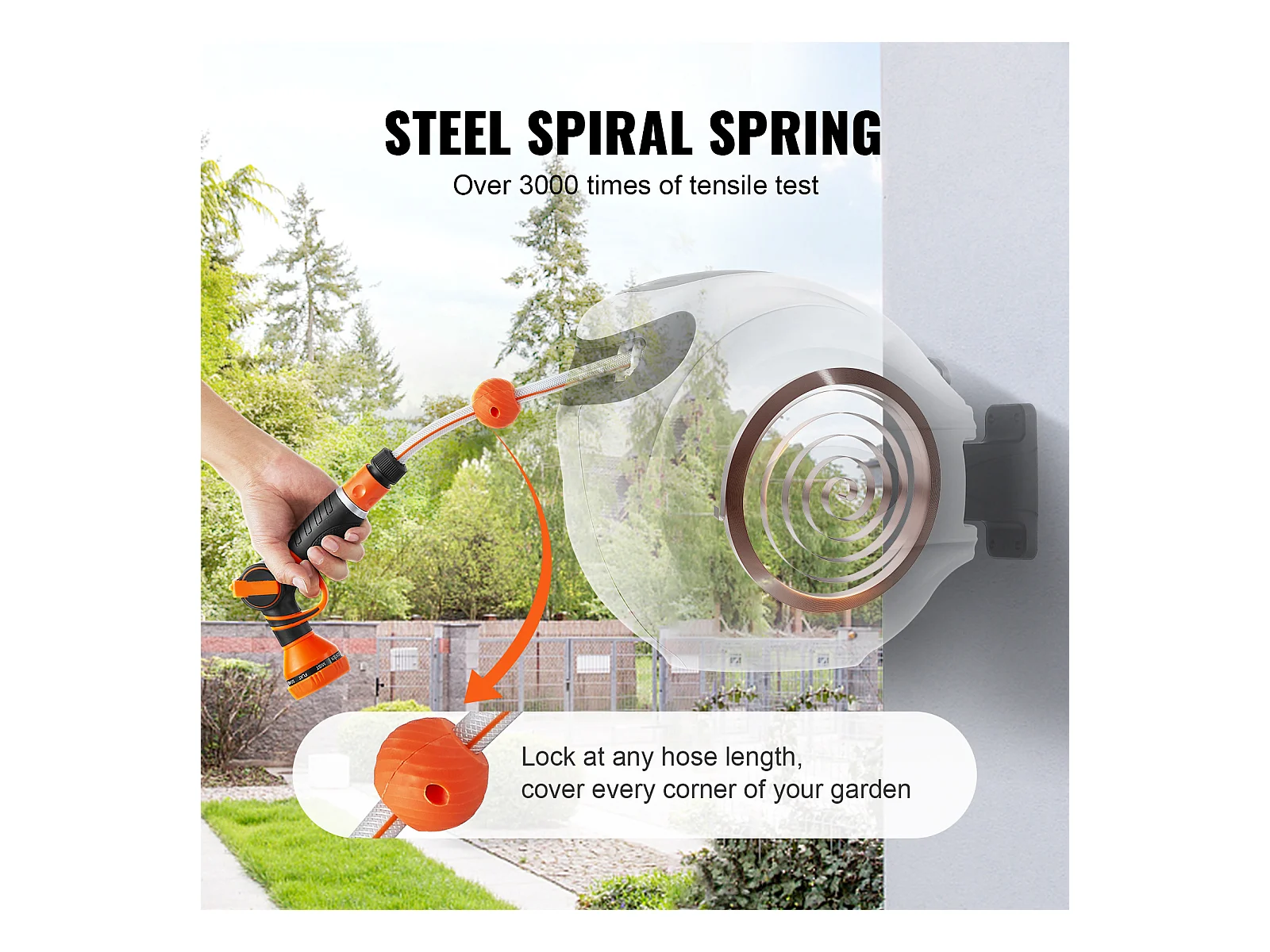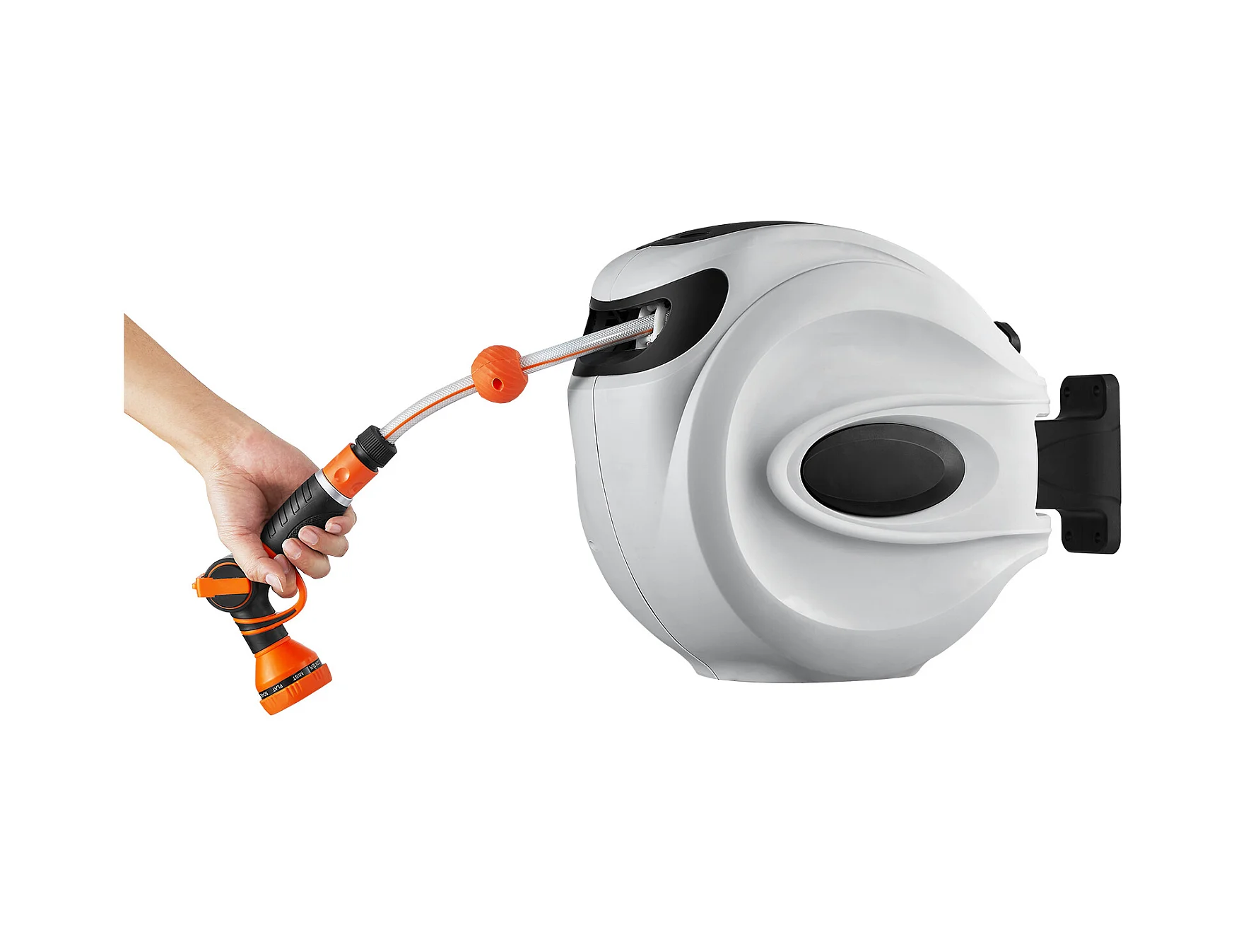 Enrouleur de Tuyau Rétractable SucceBuy 65.6'x1/2" 180° Pivotant Montage Mural