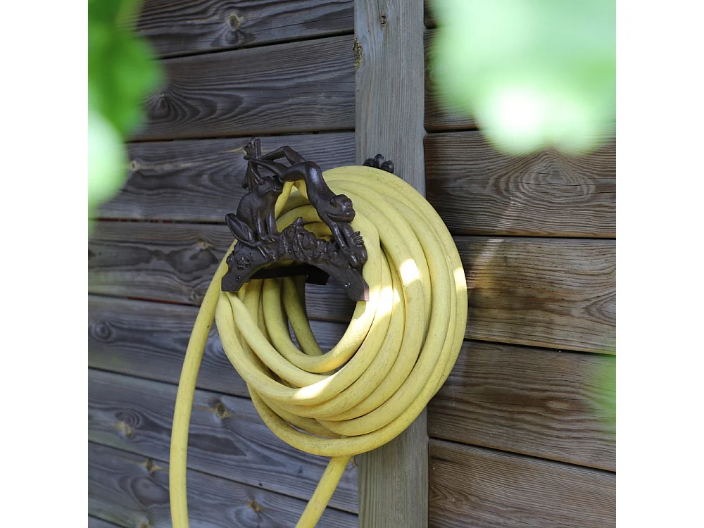 Enrouleur support mural porte tuyau d'arrosage fonte marron 24.5cm