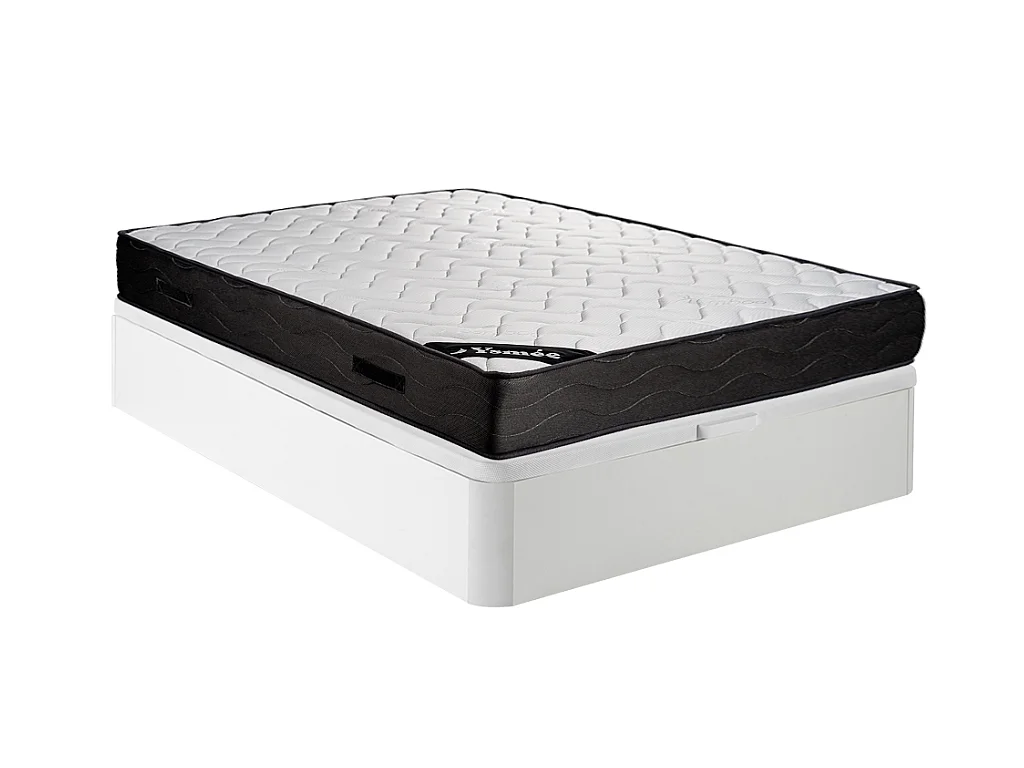 Ensemble 140 x 190 cm sommier coffre blanc + matelas ressorts ensachés 7 zones et mémoire de forme ép.24cm - MERISI de YSMÉE