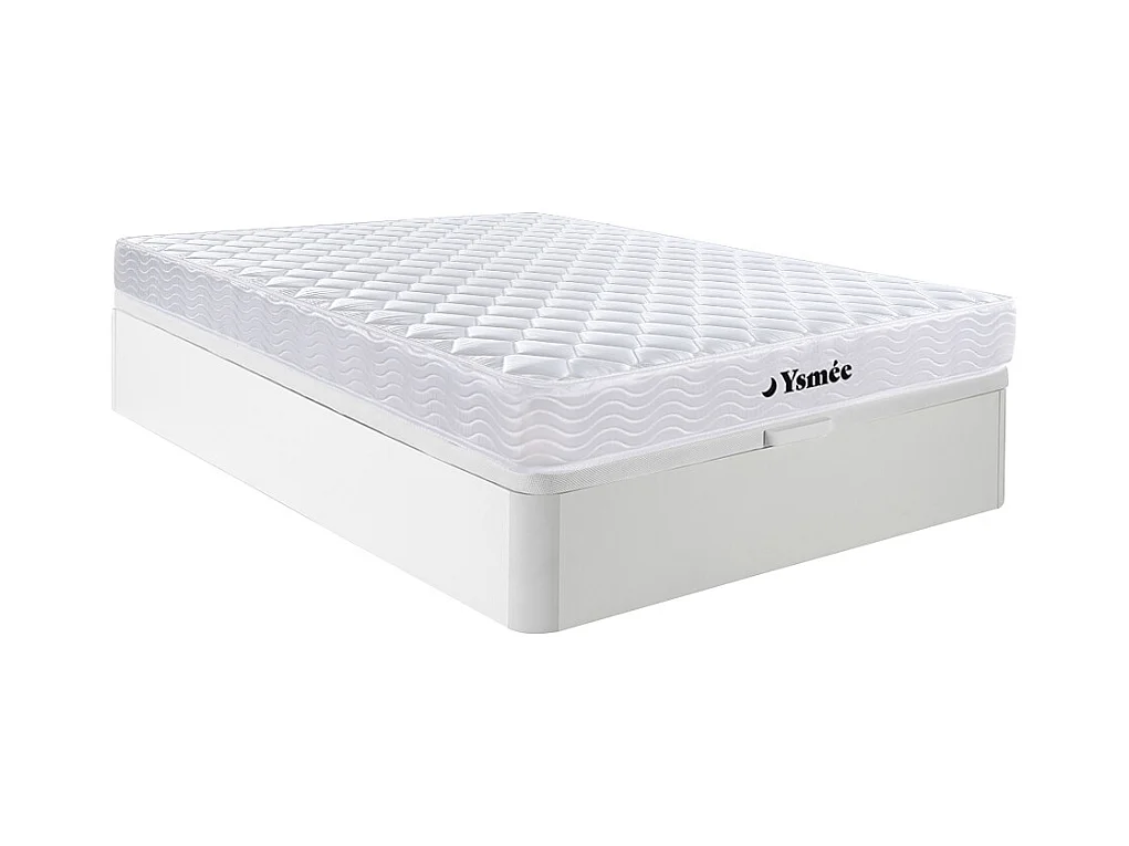 Ensemble 140 x 190 cm sommier coffre blanc + matelas ressorts et mémoire de forme ép.15cm - WOLKENLOS de YSMÉE