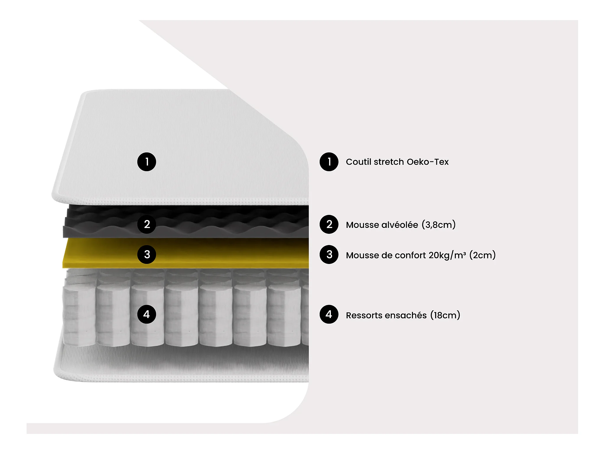 • Mousse alvéolée et ressorts ensachés