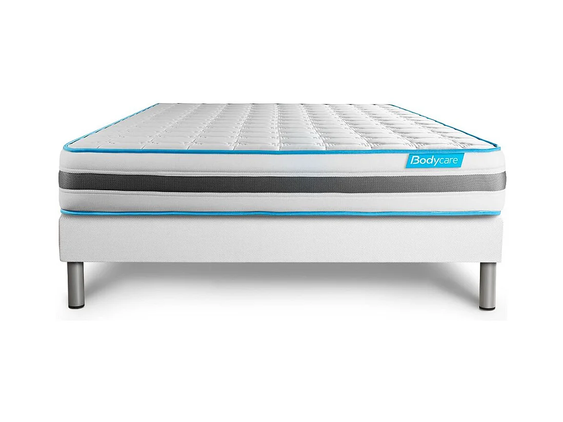 Ensemble 140x200 matelas BodyFlex ressorts ensachés et mémoire de forme + sommier kit blanc