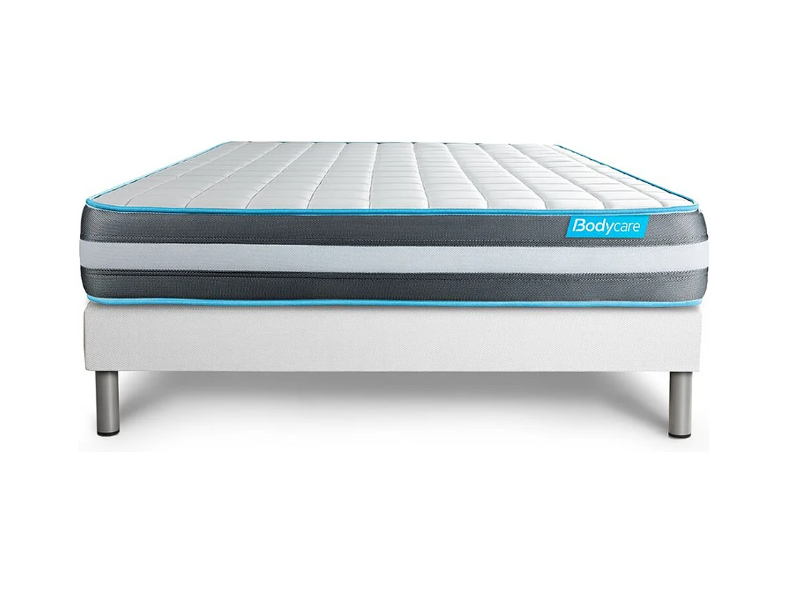 Ensemble 140x200 matelas BodyForm à Mémoire de forme 3 zones + sommier kit blanc