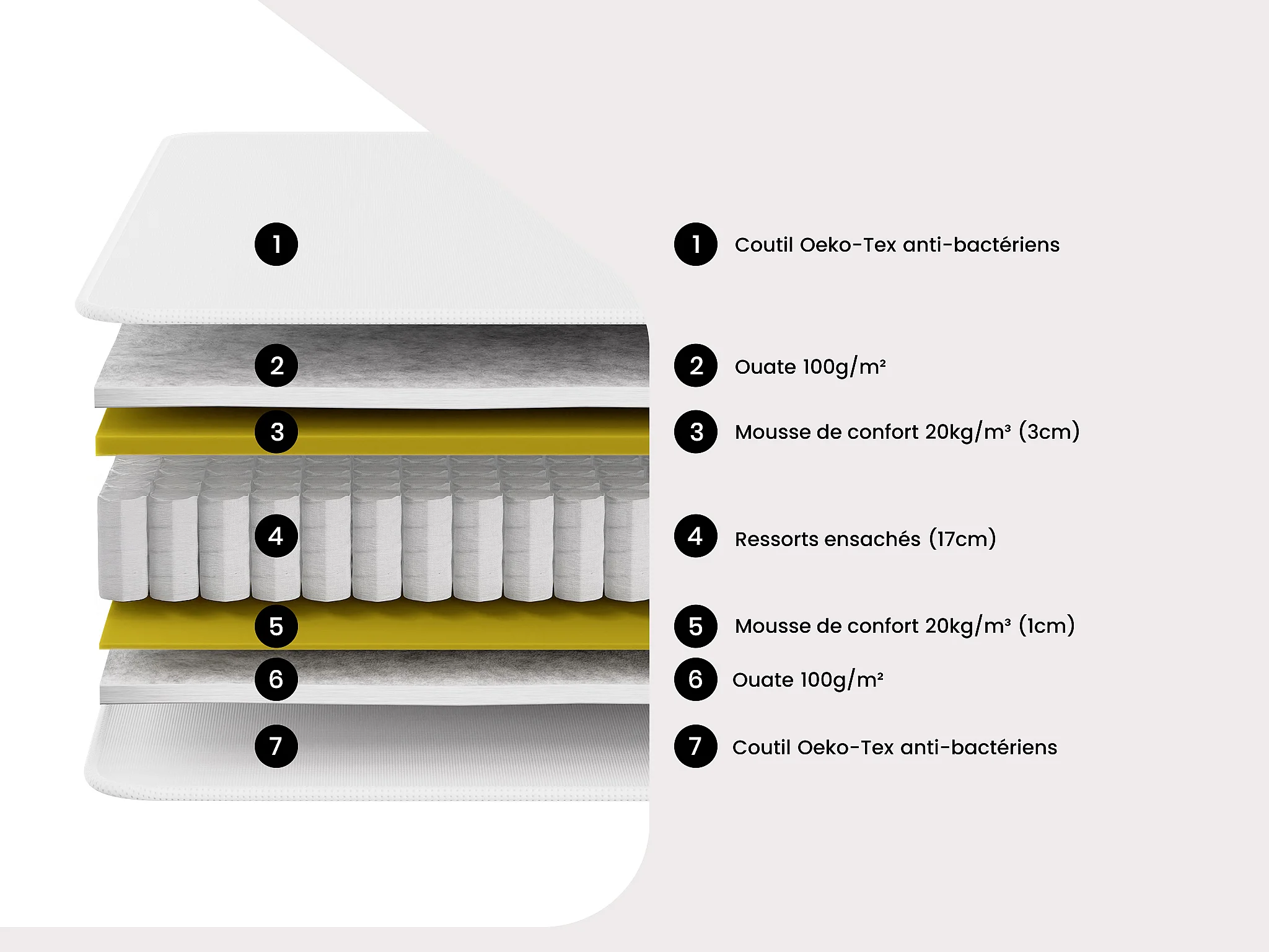 Ensemble 160 x 200 cm sommier coffre avec tiroir blanc + matelas ressorts ensachés ép.22cm - PRESTIGE de YSMÉE