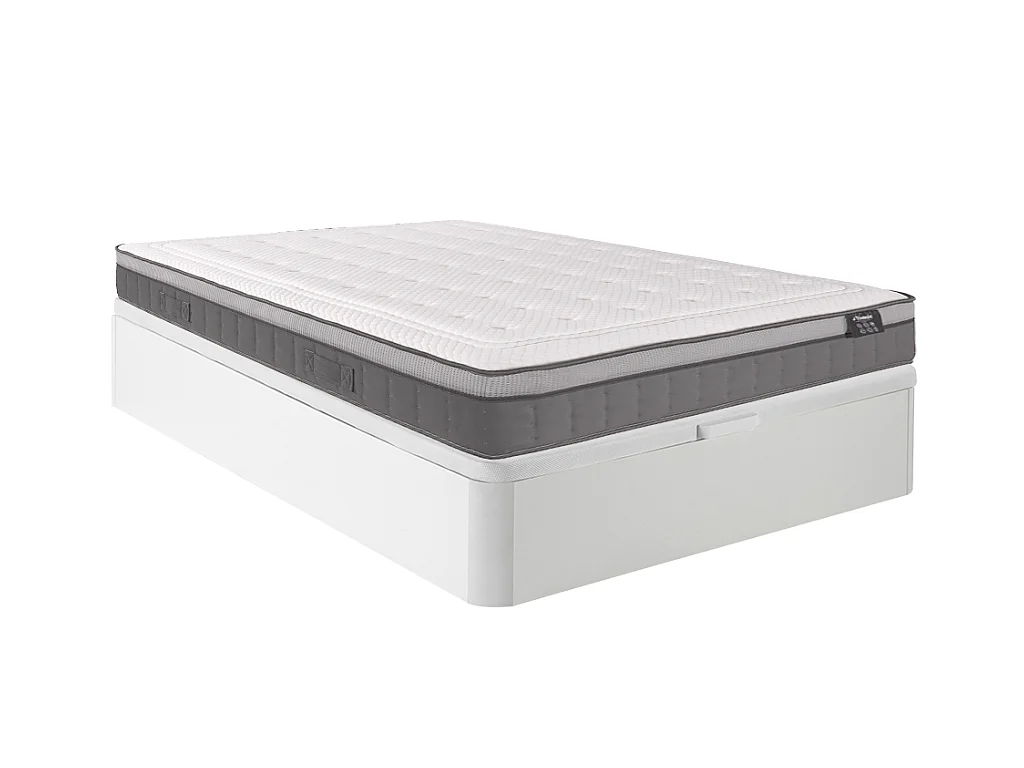 Ensemble 160 x 200 cm sommier coffre blanc + matelas hybride ressorts ensachés 7 zones et mémoire de forme ép.30cm - ASGARD de YSMÉE