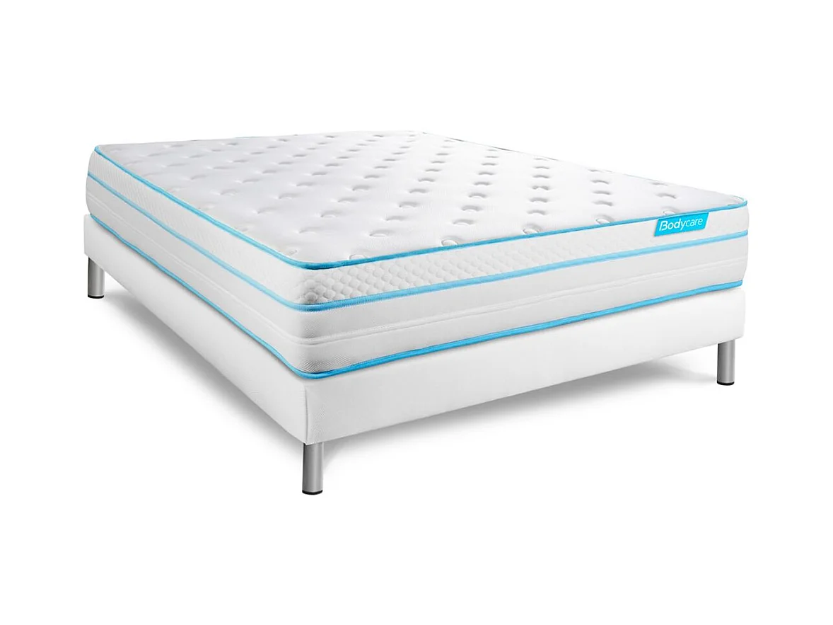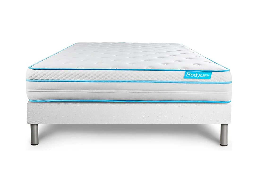 Ensemble 160x200 matelas BodyMax micro ressorts ensachés et mémoire de forme + sommier kit blanc