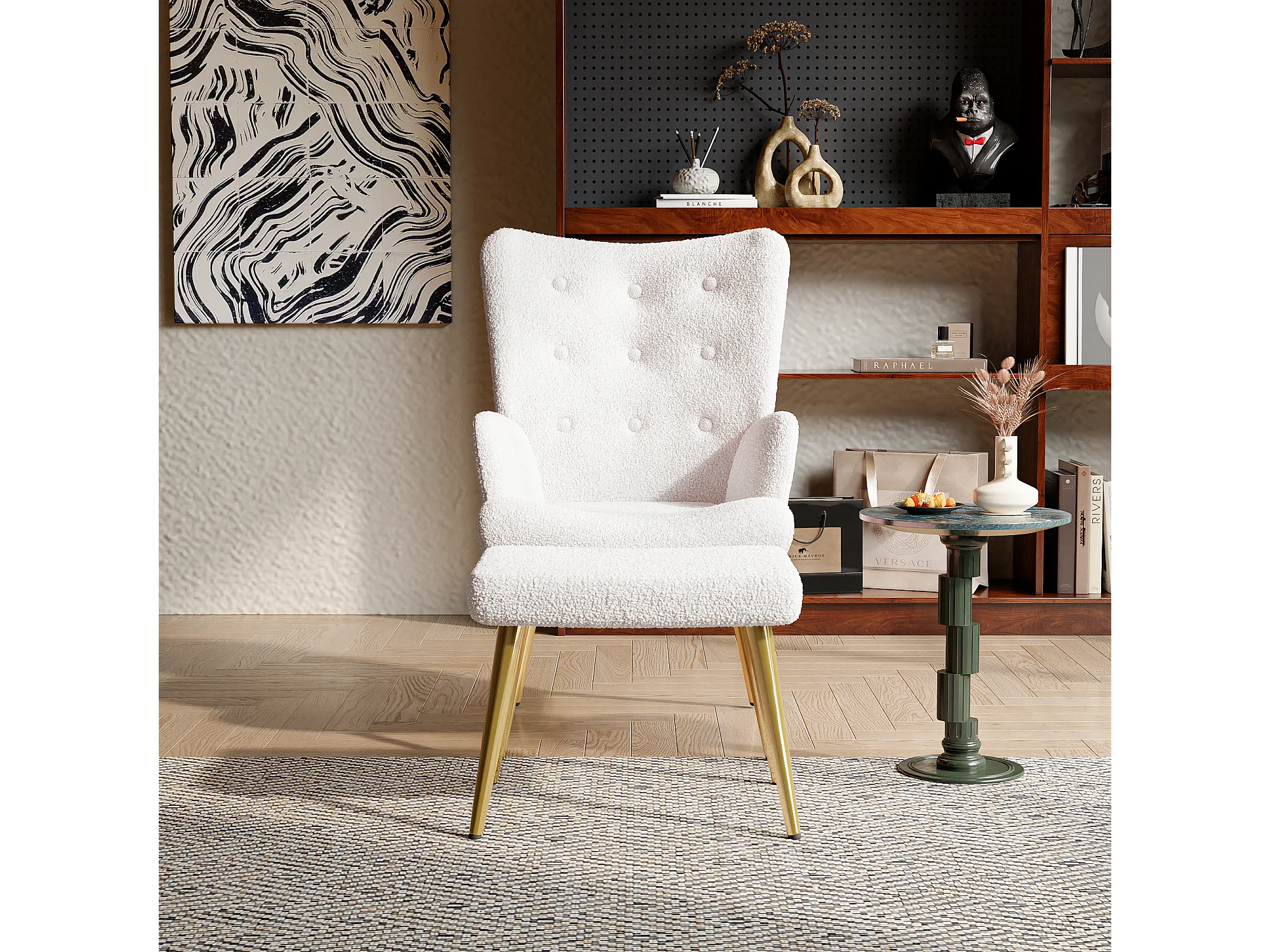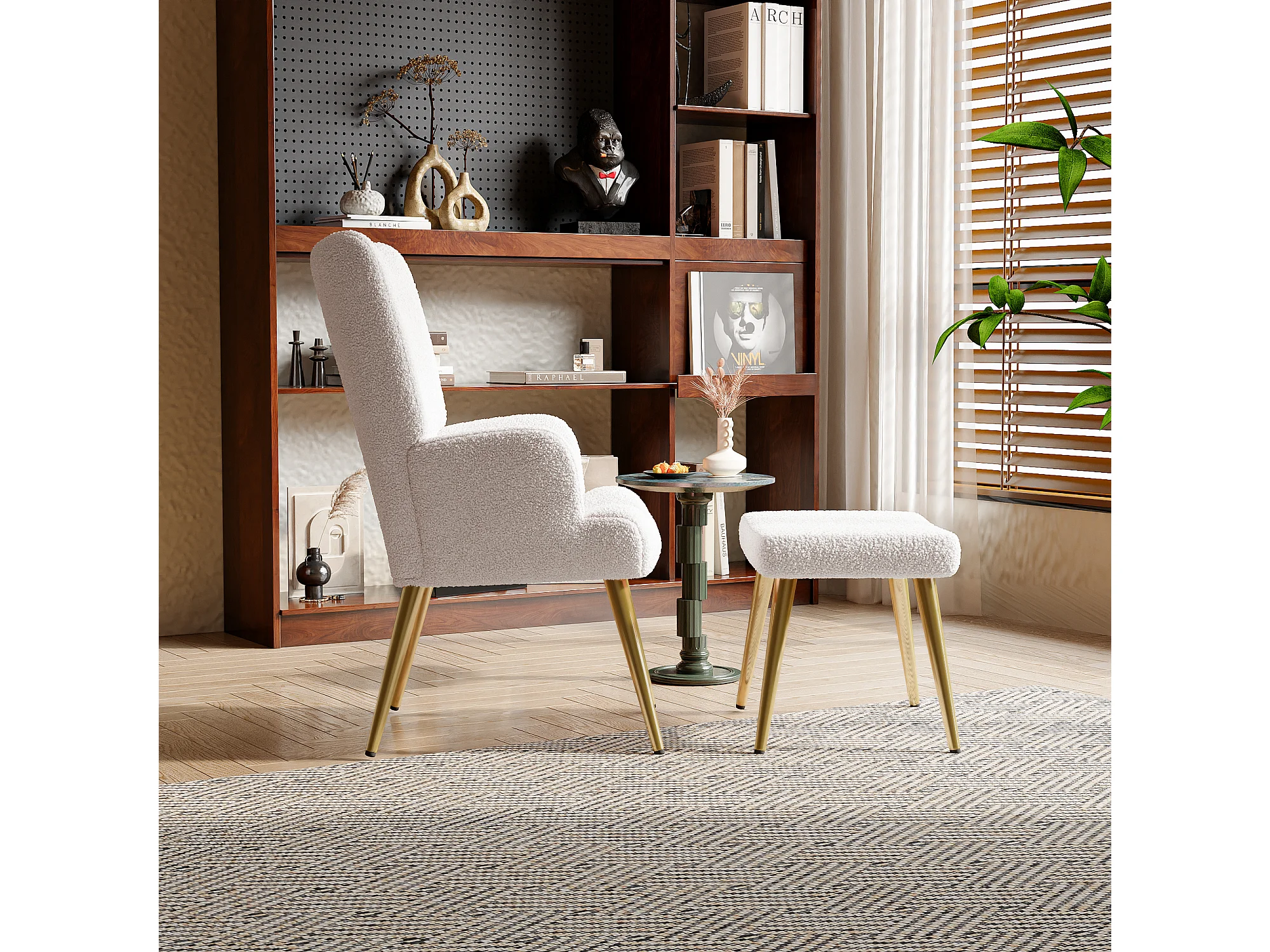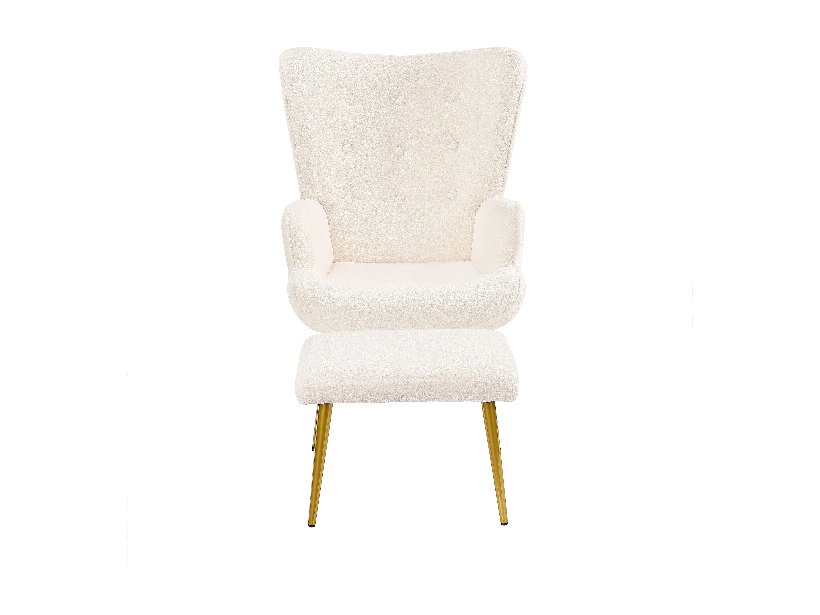 Ensemble 2 pièces, ensemble de chaises sherpa avec tabouret, design élégant, blanc