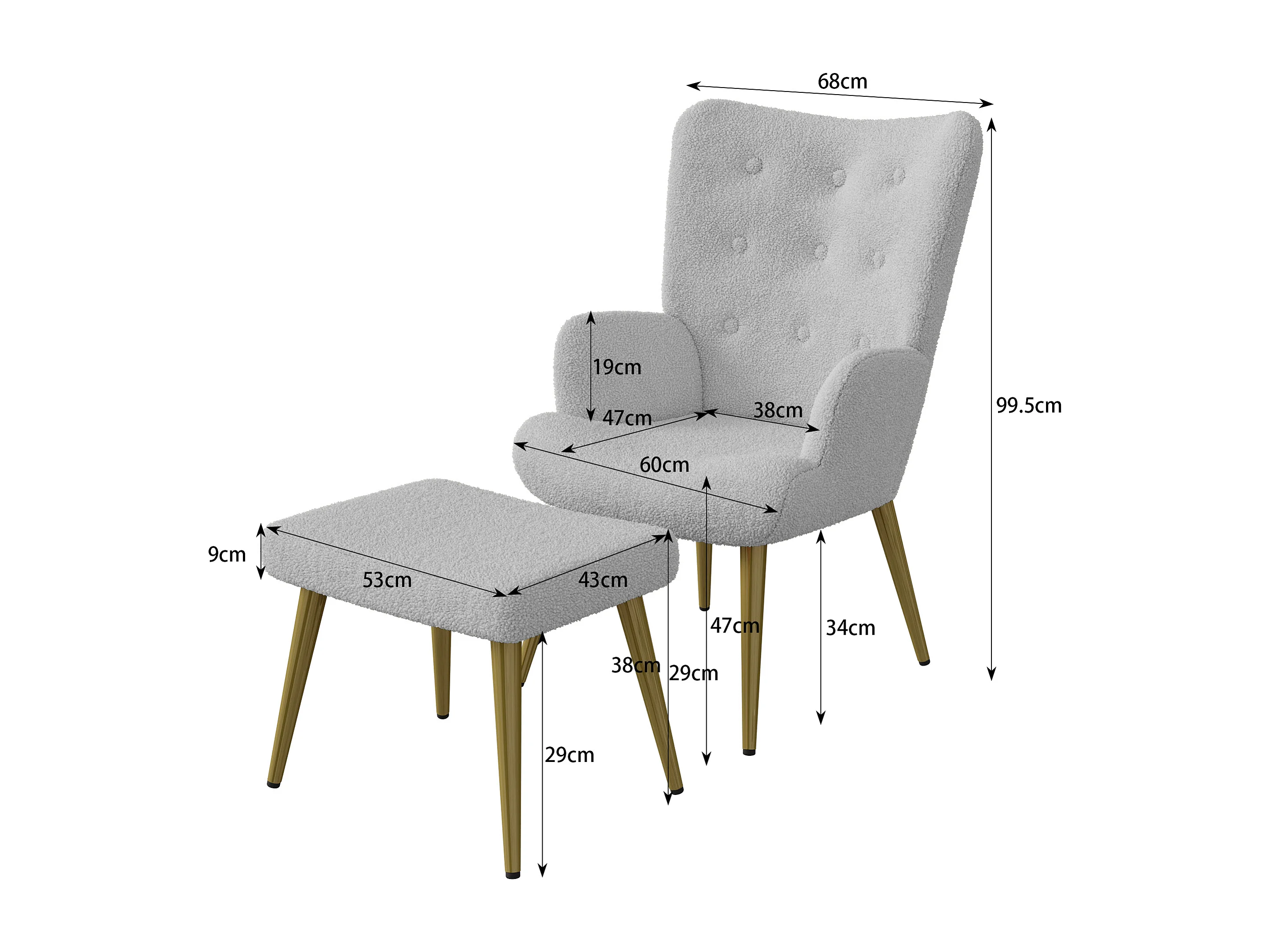 Ensemble 2 pièces, ensemble de chaises sherpa avec tabouret, design élégant, gris