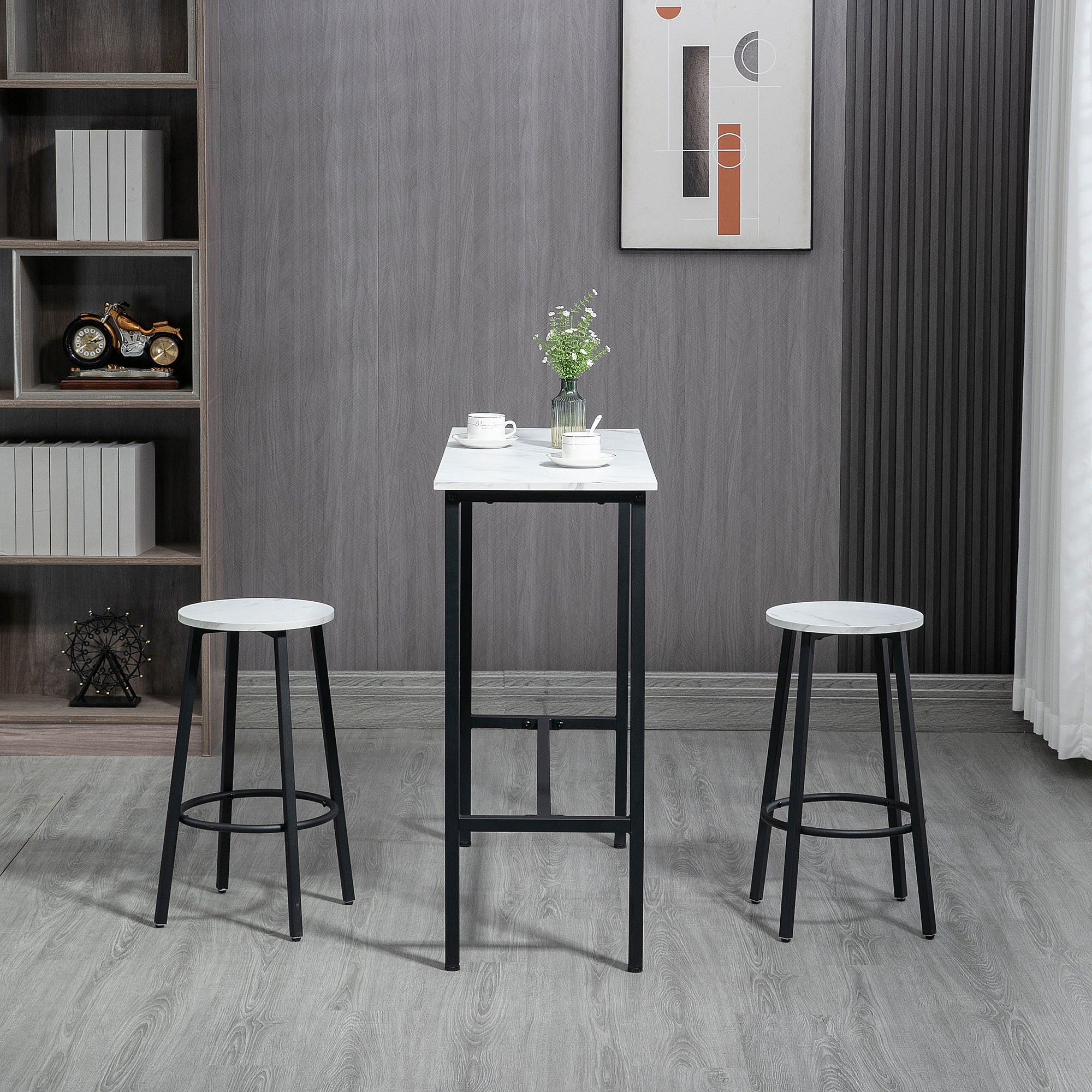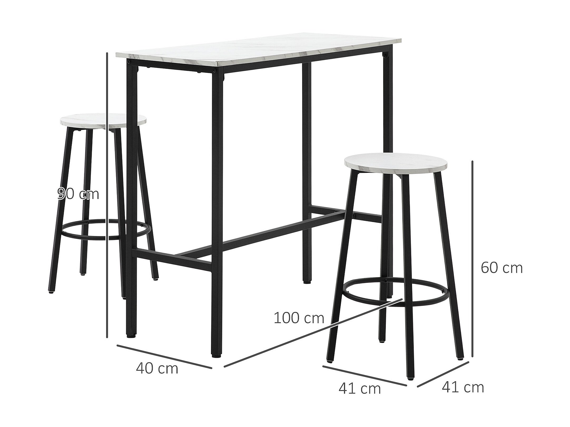 Ensemble 2 places 3 pièces design contemporain - acier noir aspect marbre blanc