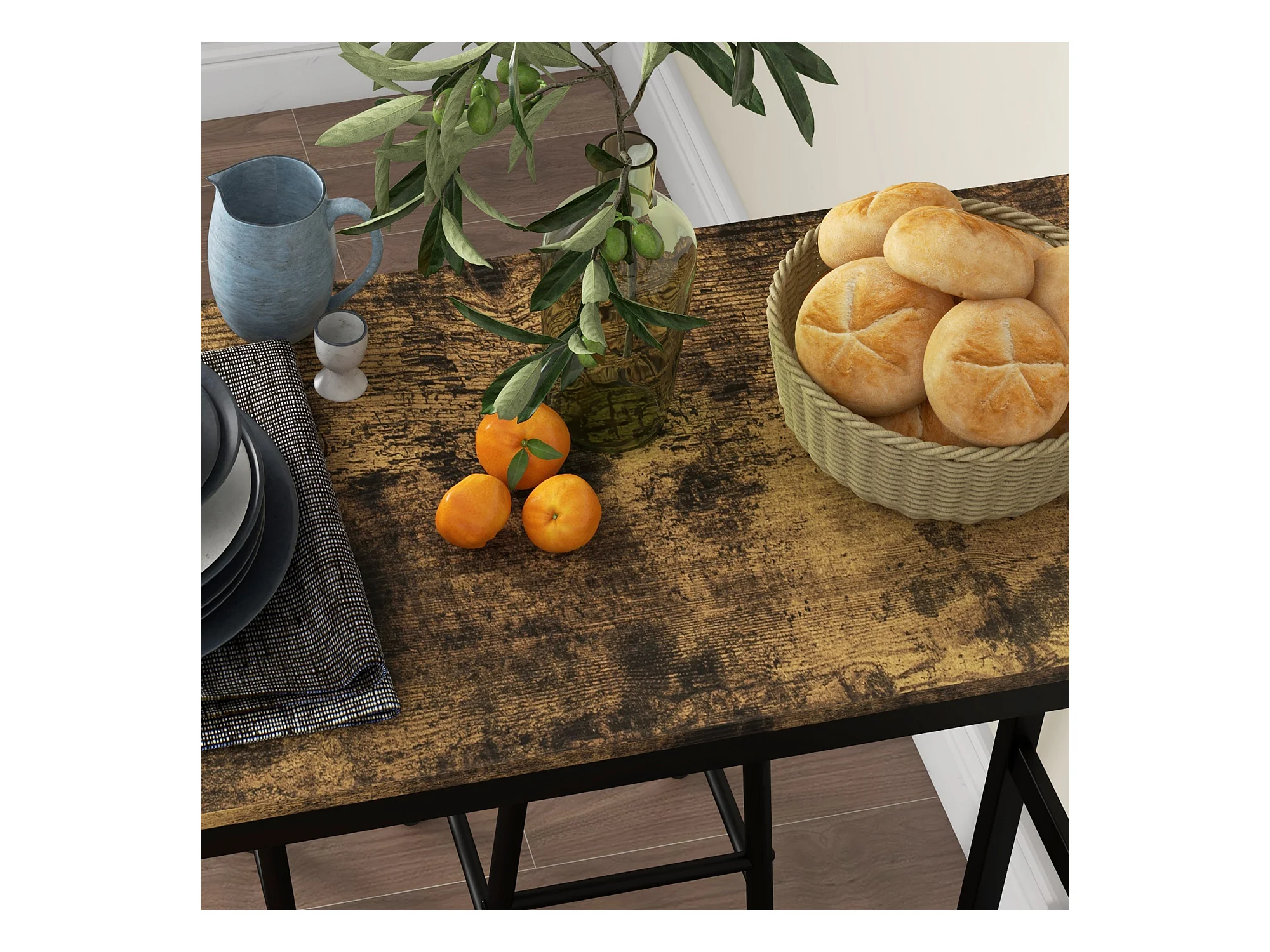 Table haute cuisine avec tabouret, industrielle pliable, mange debout 2 personnes
