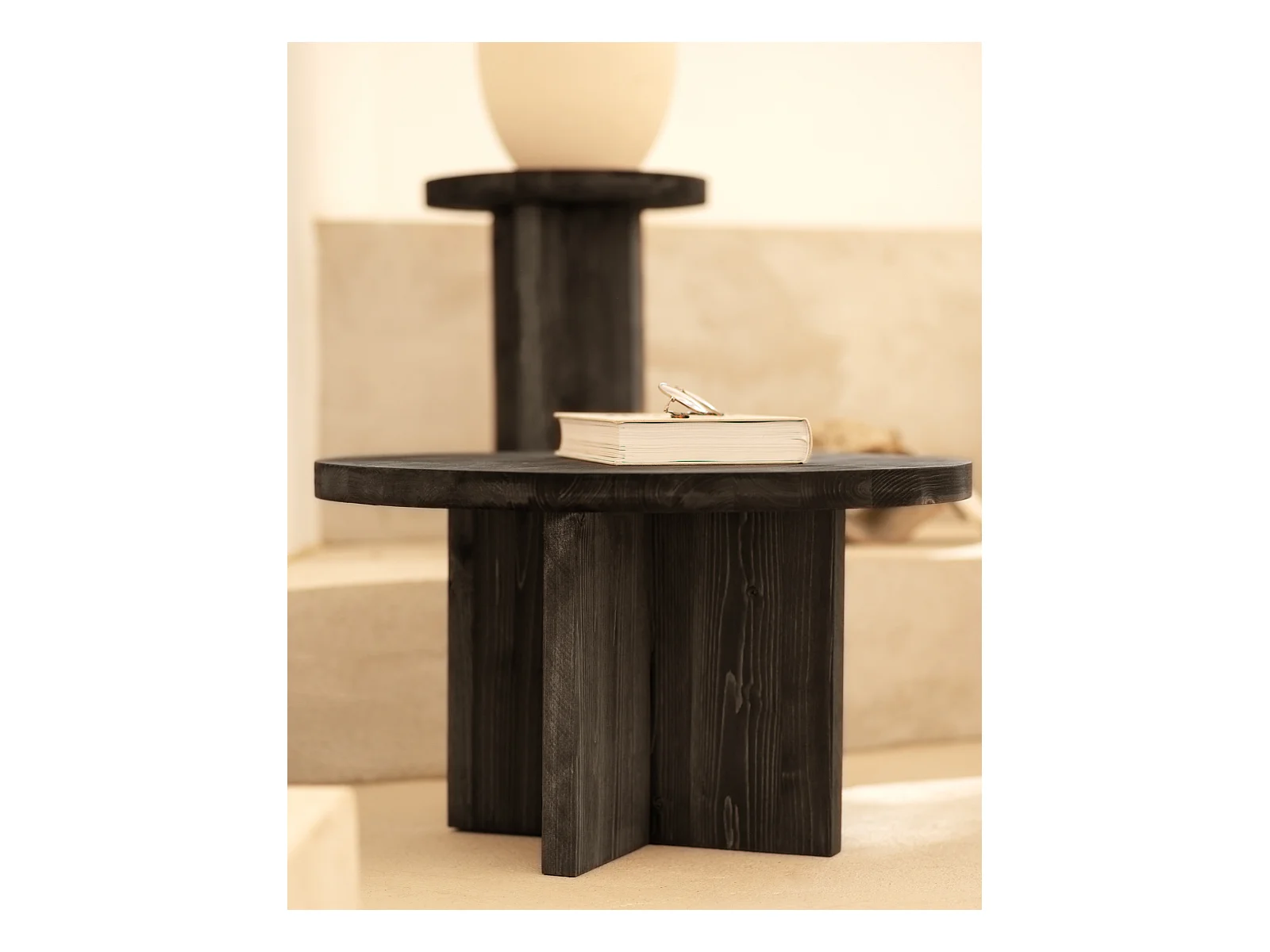 Ensemble 2 tables en bois de sapin noir 80x30cm - TOKYO - DECOWOOD