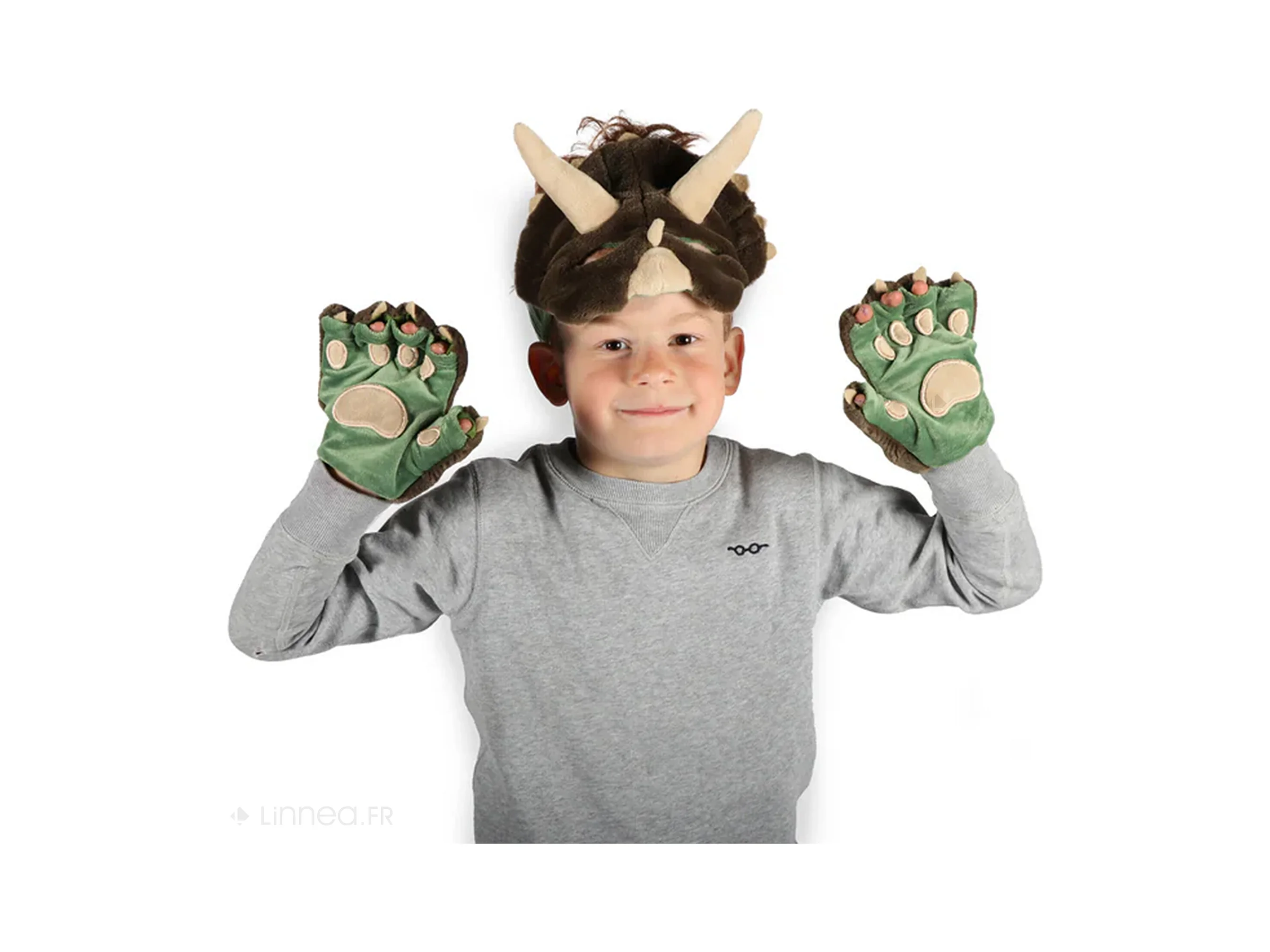 Ensemble 3 pièces déguisement en peluche pour enfant dino vert