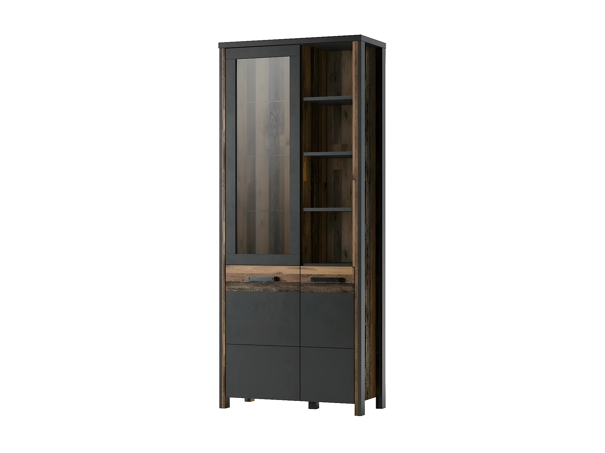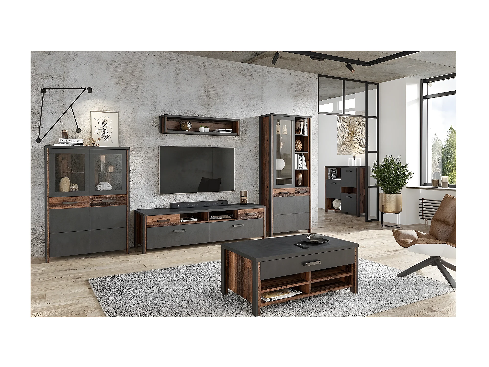 Ensemble 5 meubles de salon collection WINDSOR. Coloris gris anthracite et chêne foncé.