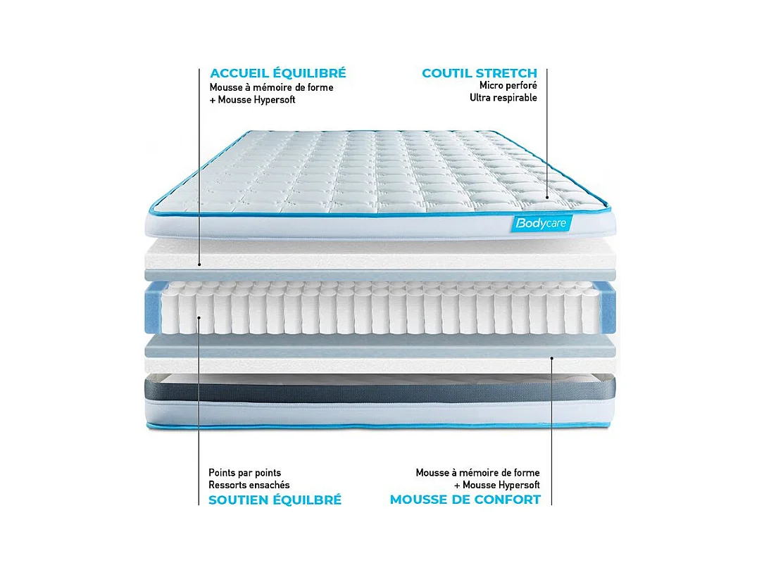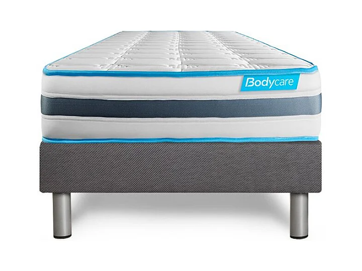 Ensemble 90x200 matelas BodyFlex ressorts ensachés et mémoire de forme + sommier kit gris