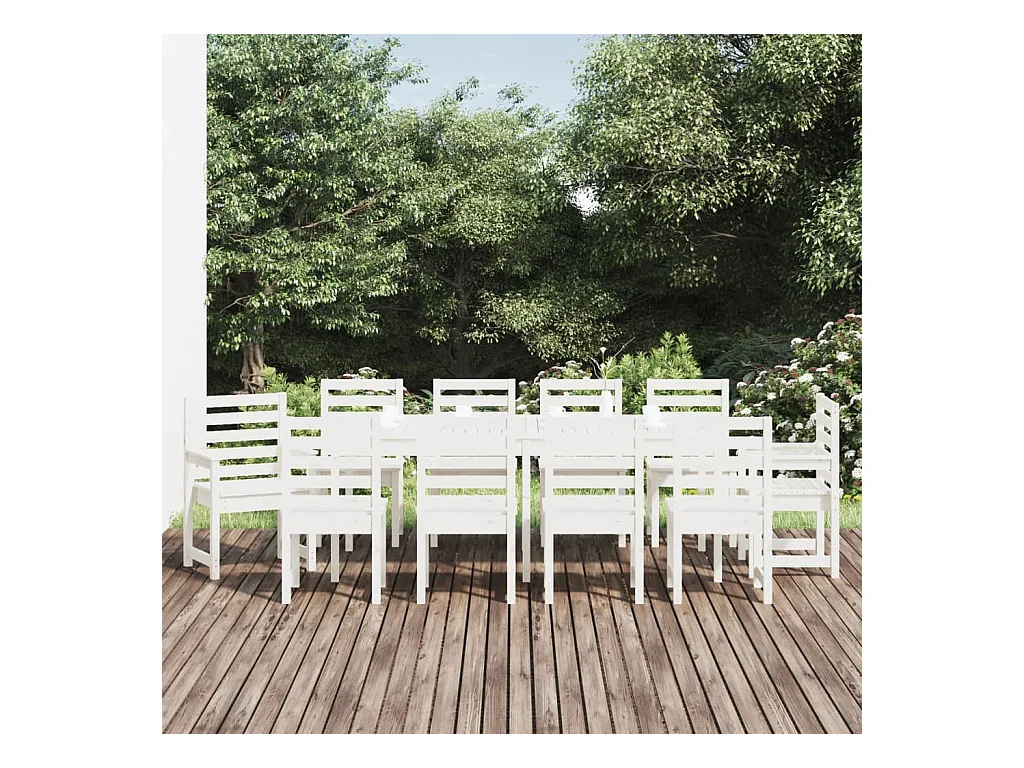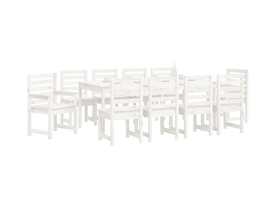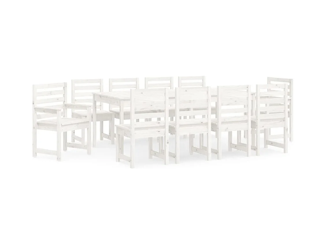 Ensemble à manger de jardin 11 pcs blanc bois massif de pin