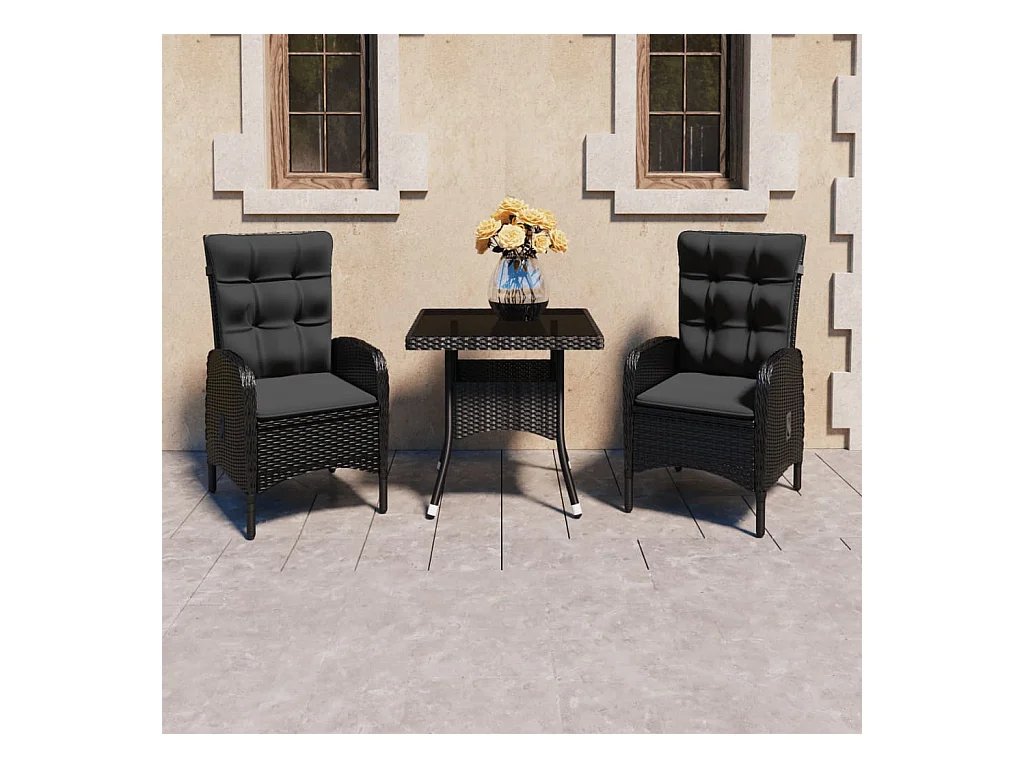 Ensemble à dîner de jardin 3 pcs Résine tressée et verre Noir
