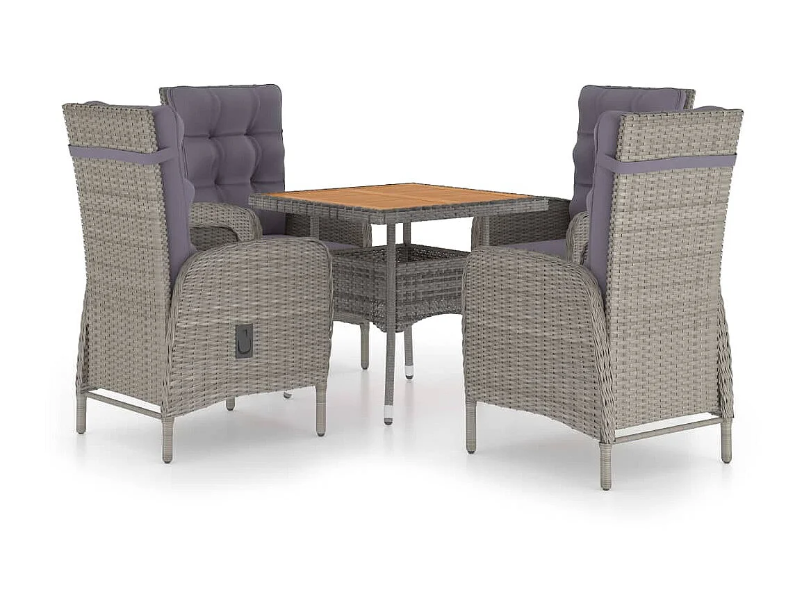 Ensemble à dîner de jardin 5 pcs Résine tressée et acacia Gris