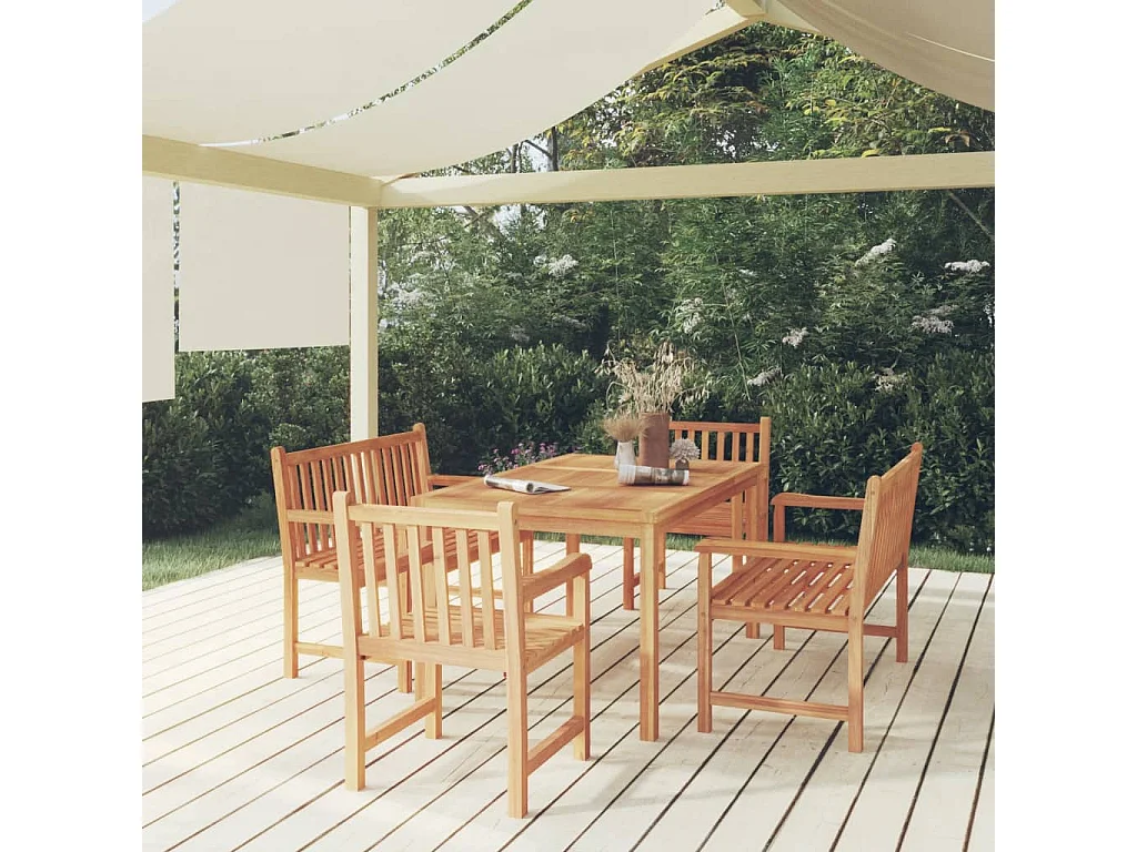 Ensemble à dîner de jardin 5 pièces Bois de teck massif
