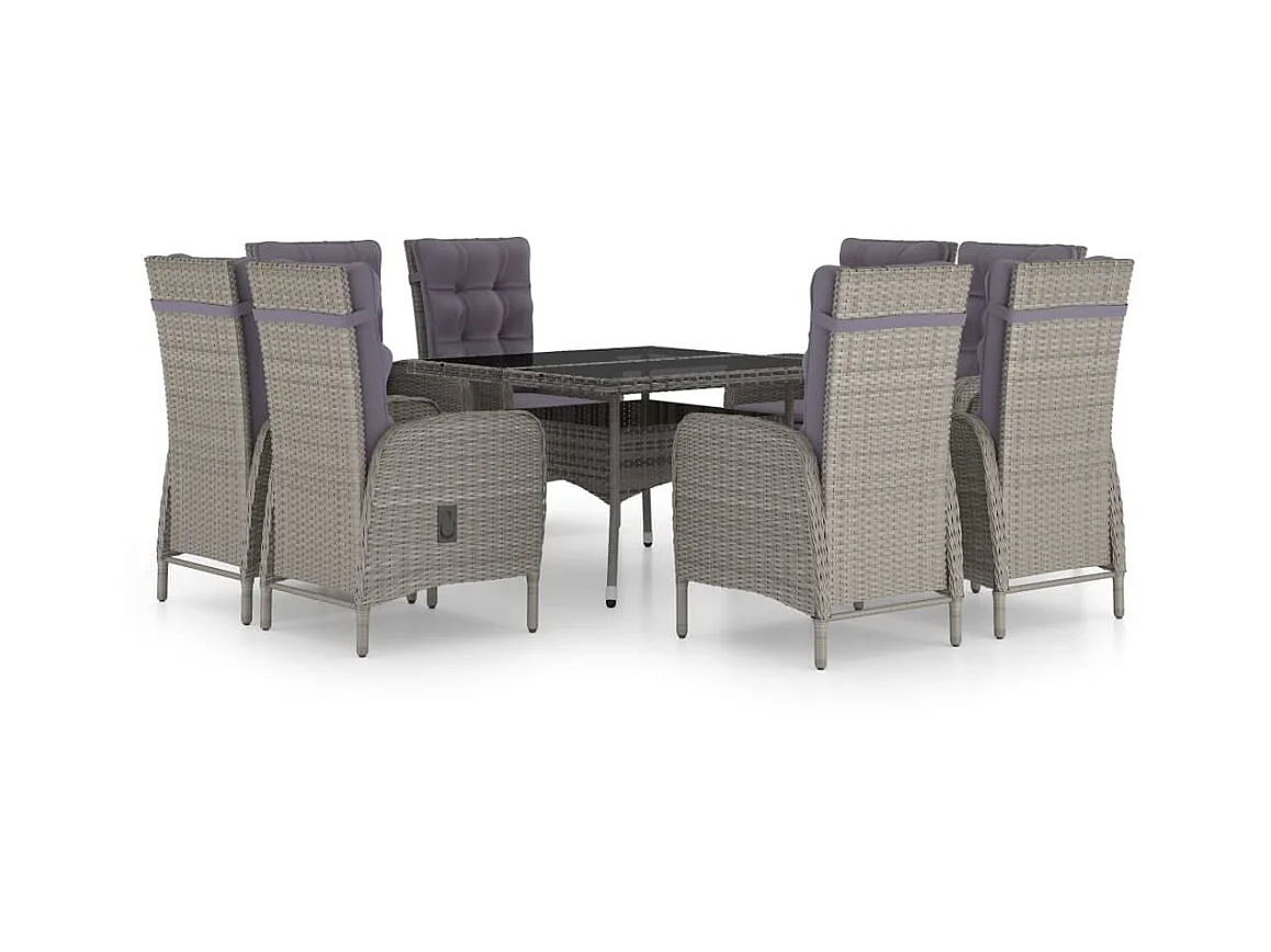 Ensemble à dîner de jardin 9 pcs Résine tressée et verre Gris 2