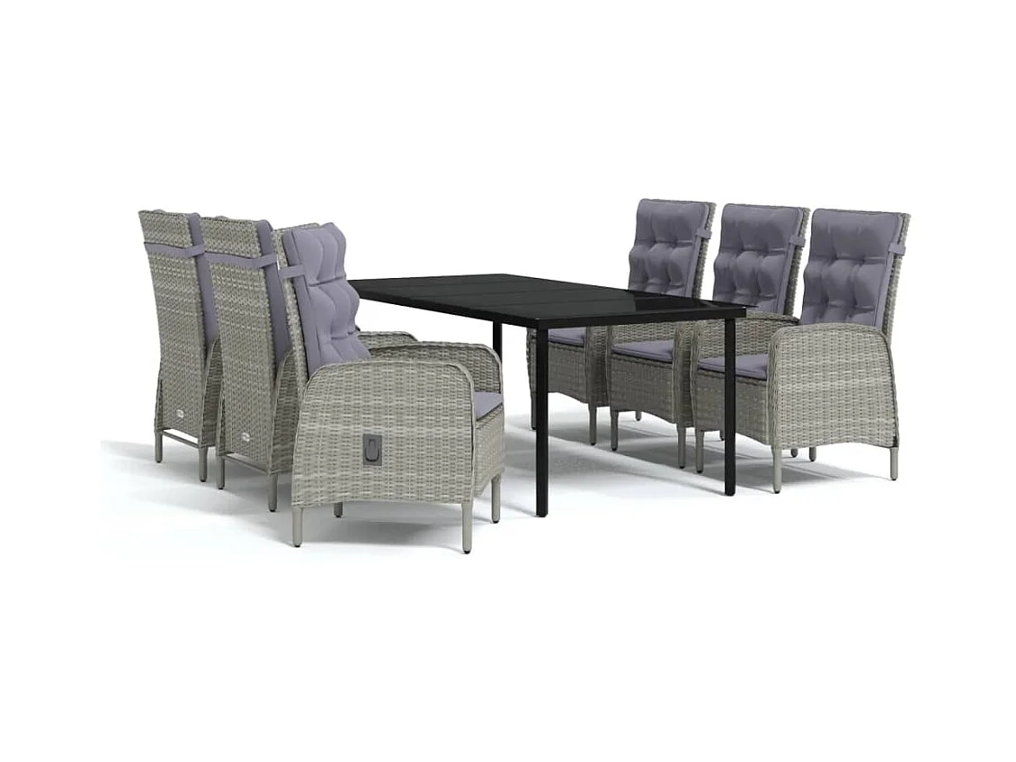 Ensemble à dîner de jardin avec coussins 7 pcs Gris et noir
