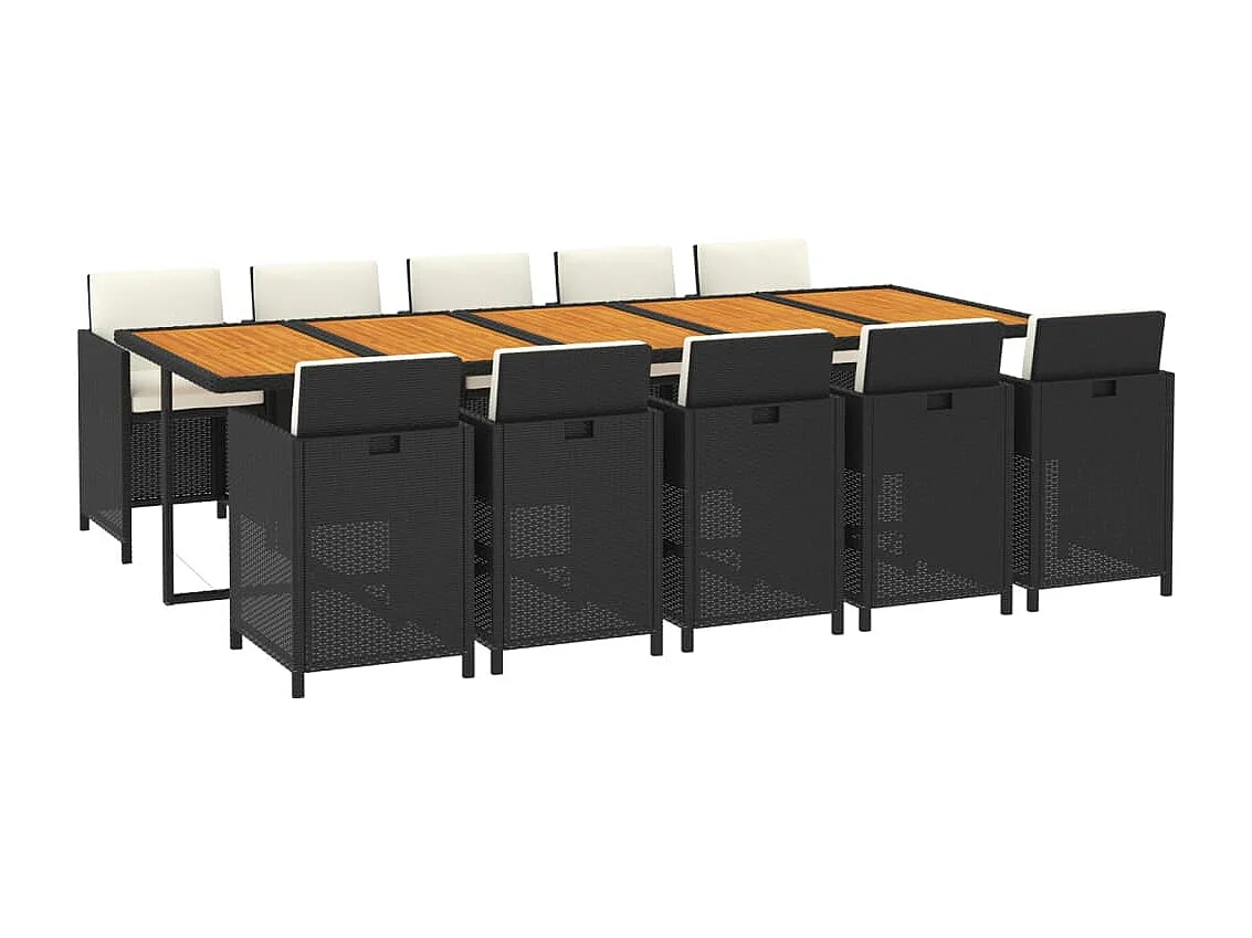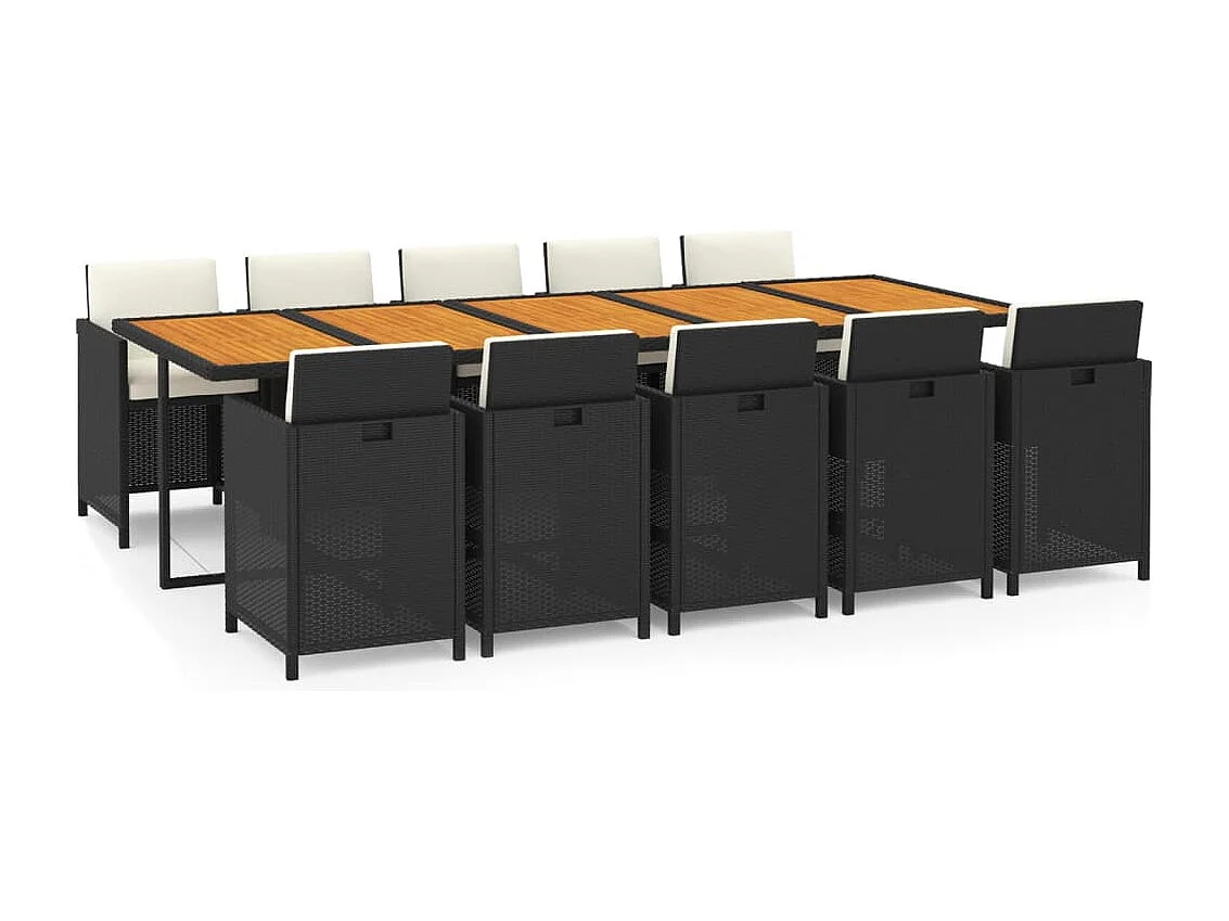 Ensemble à dîner de jardin coussins 11 pièces Résine tressée Noir