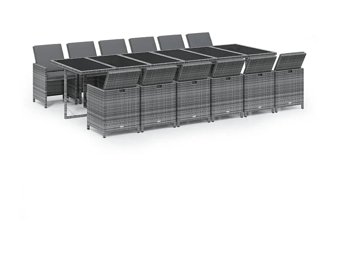 Ensemble à dîner de jardin coussins 13 pcs Résine tressée Gris