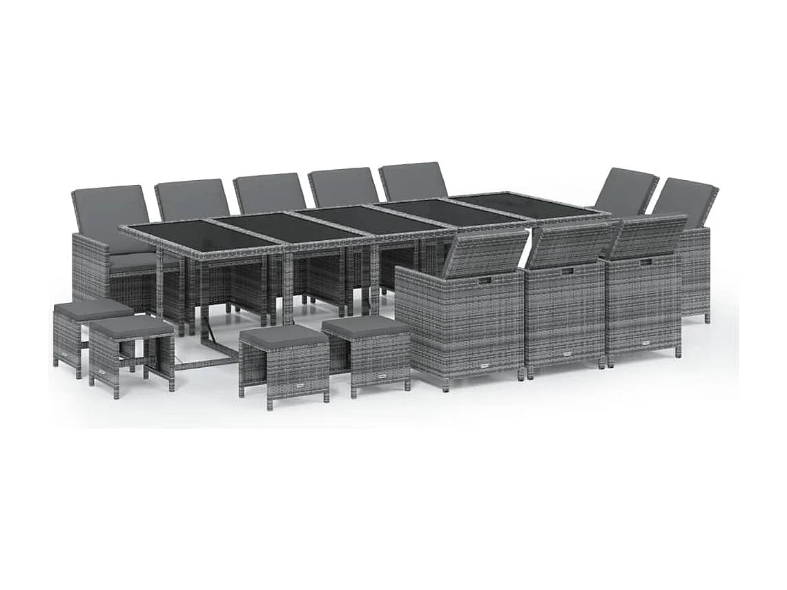 Ensemble à dîner de jardin coussins 15 pcs Résine tressée Gris BE24822