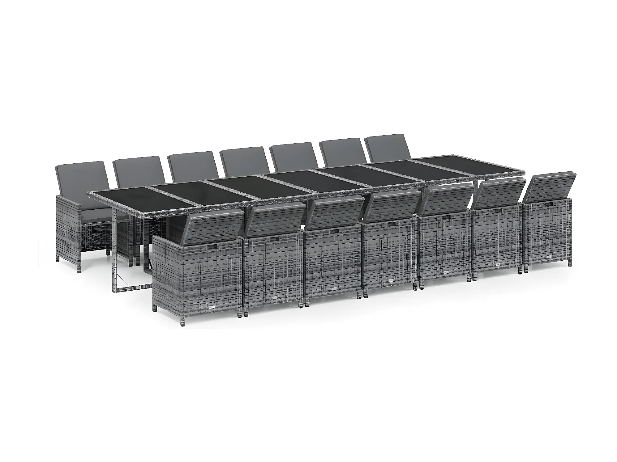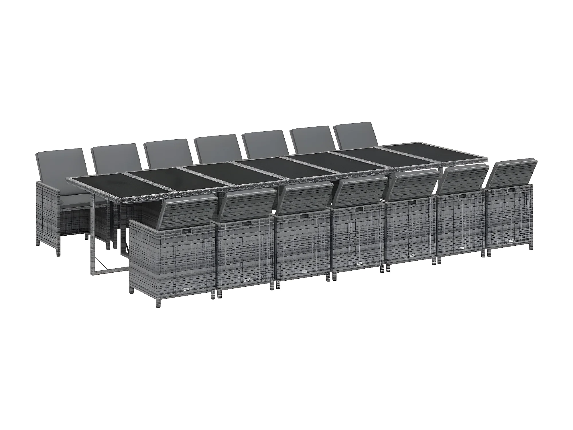Ensemble à dîner de jardin coussins 15 pcs Résine tressée Gris BE42647