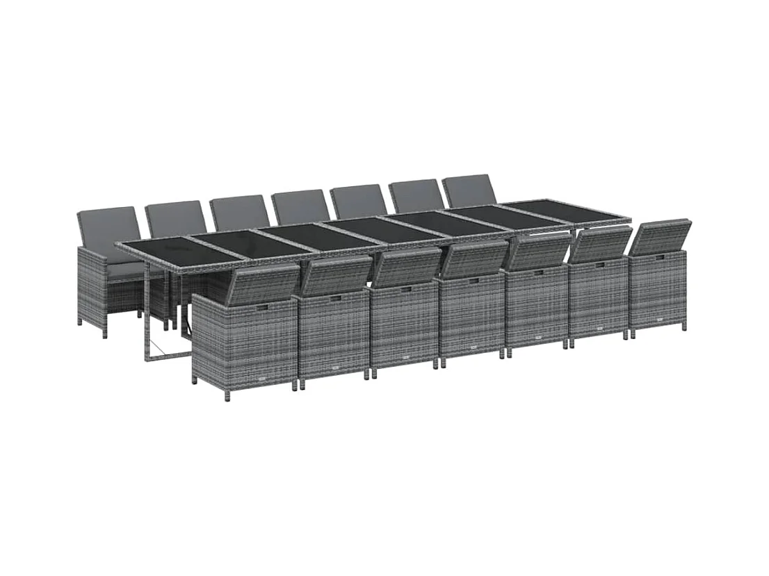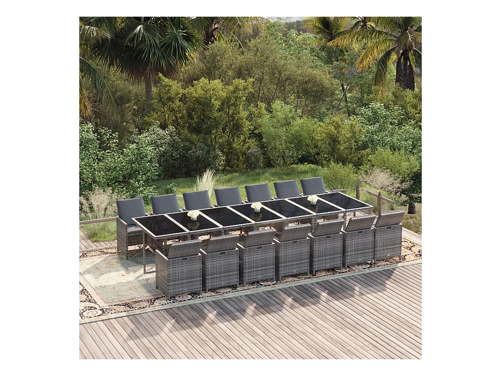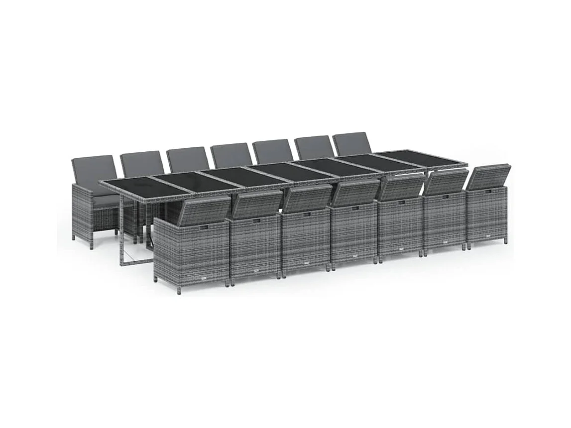 Ensemble à dîner de jardin coussins 15 pièces Résine tressée Gris