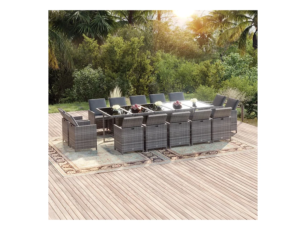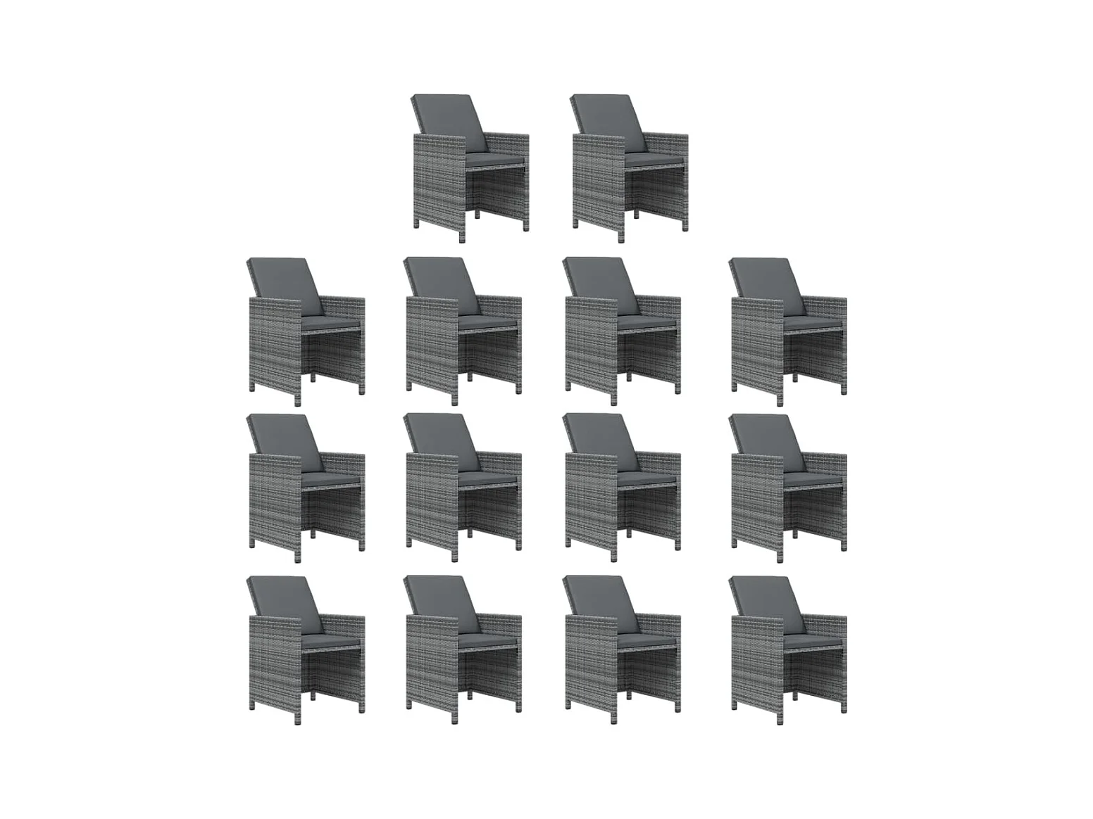 Ensemble à dîner de jardin coussins 15 pièces Résine tressée Gris
