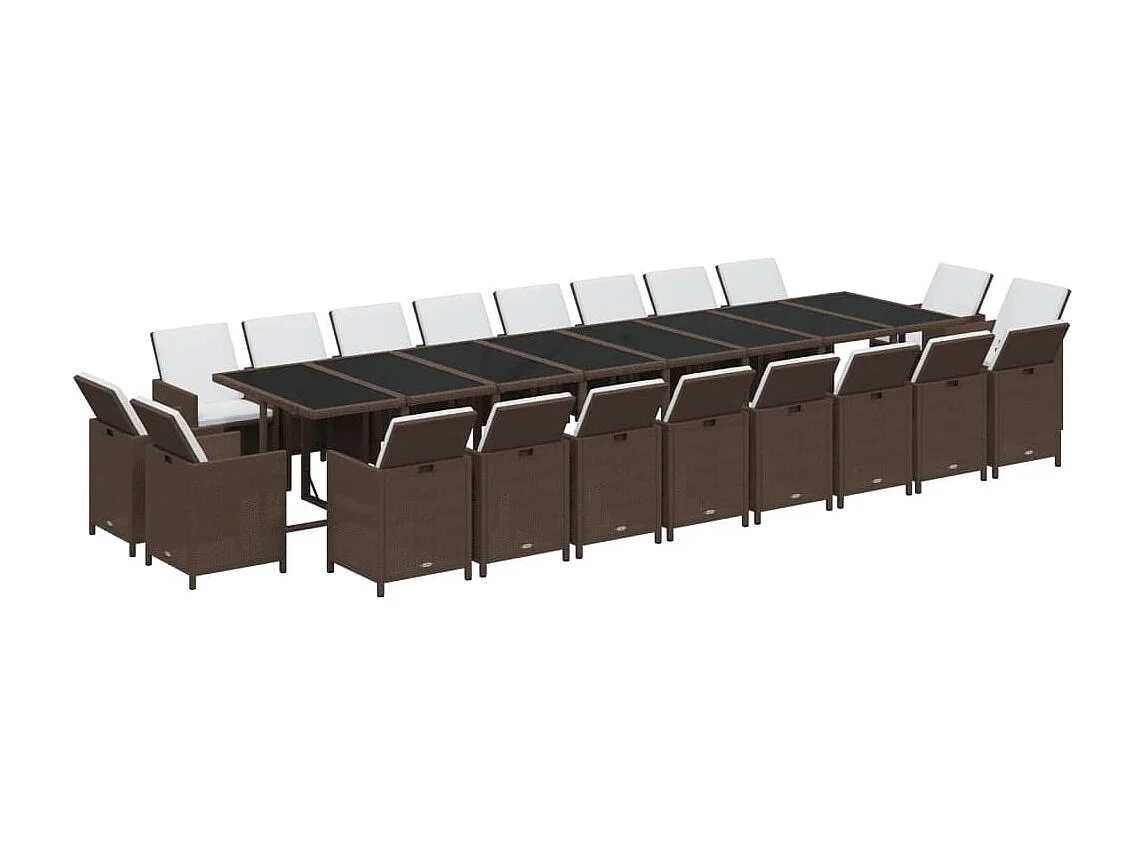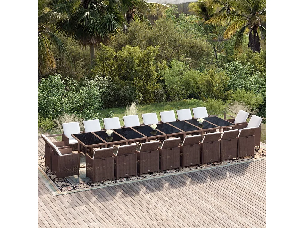 Ensemble à dîner de jardin coussins 21pièces Marron Résine tressée